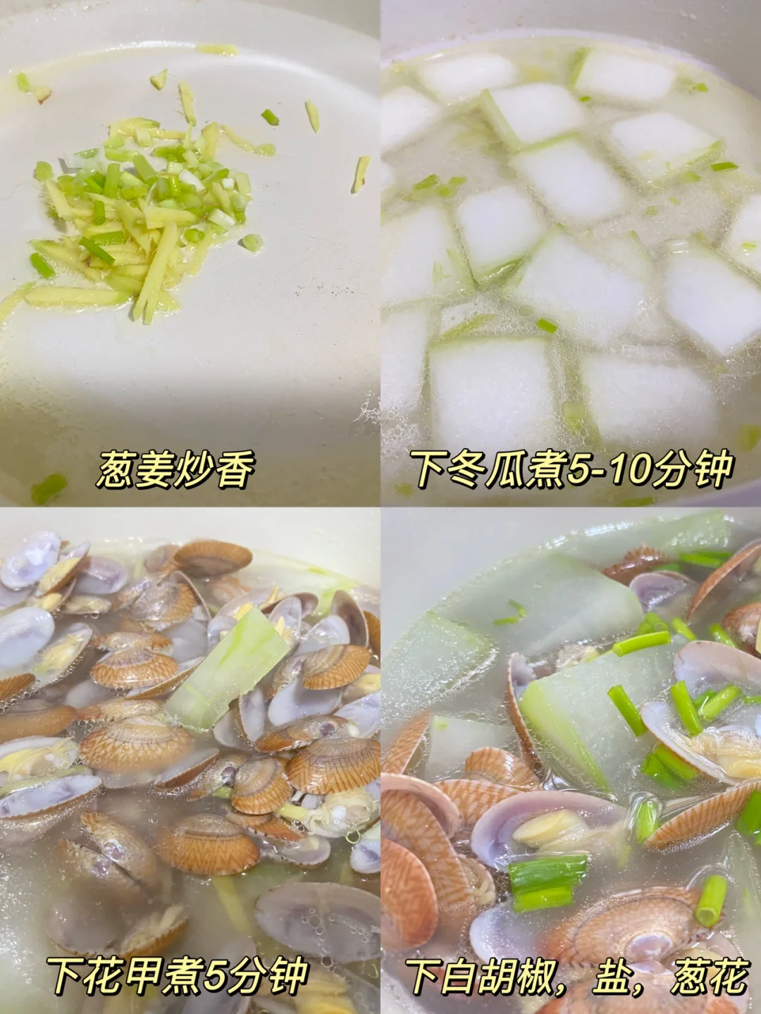 2️⃣冬瓜切块,葱姜爆香加入冬瓜,加适量水炖煮5-10分钟,和我一样喜欢软烂一些的,可以煮10分钟左右[偷笑R]