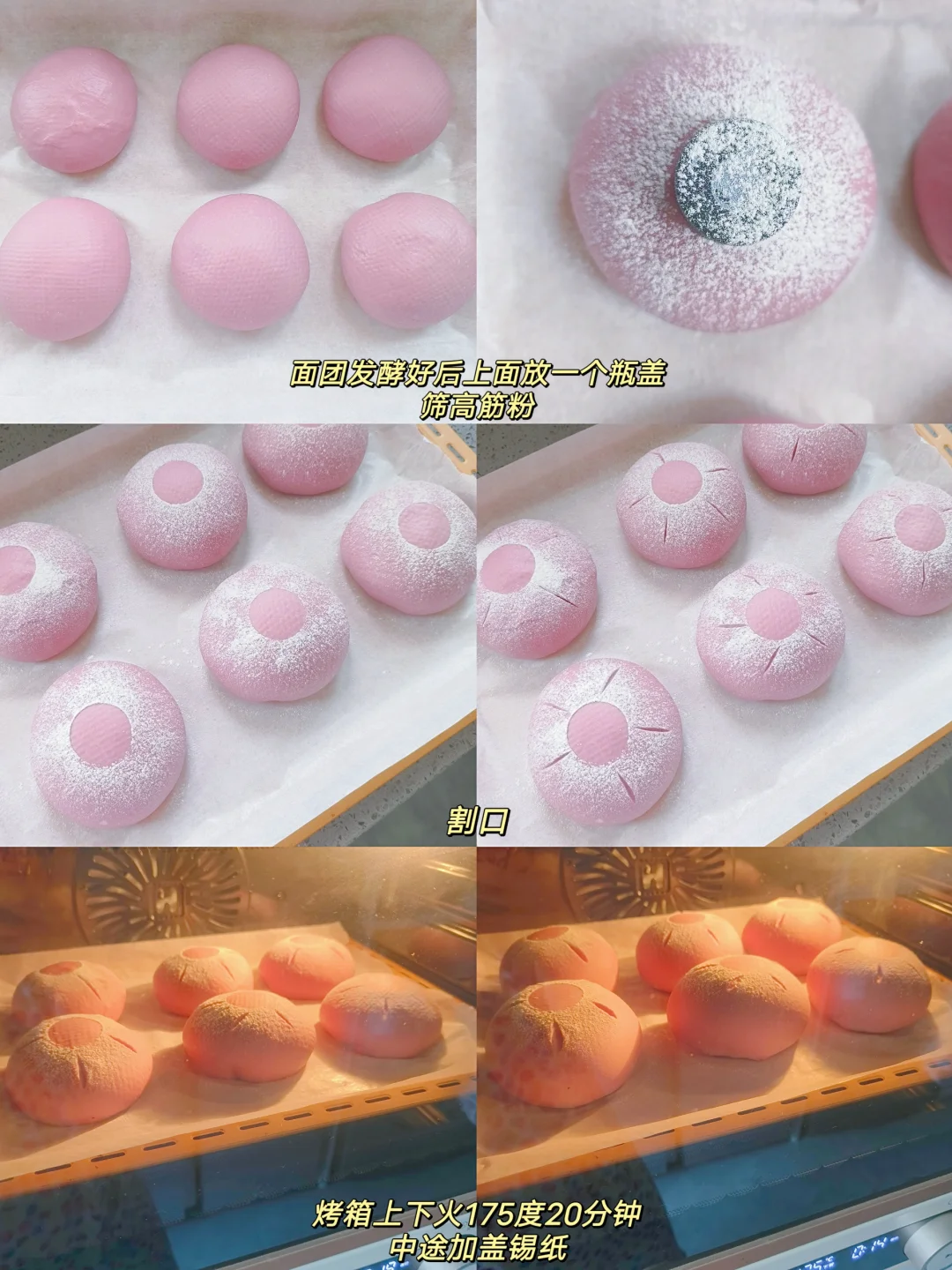 [四R]发酵好的面团表面放一个瓶盖筛高筋粉,割口,烤箱上下火175度20分钟,出炉啦~