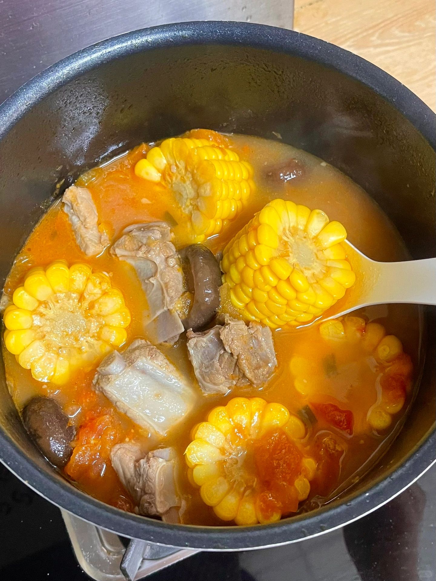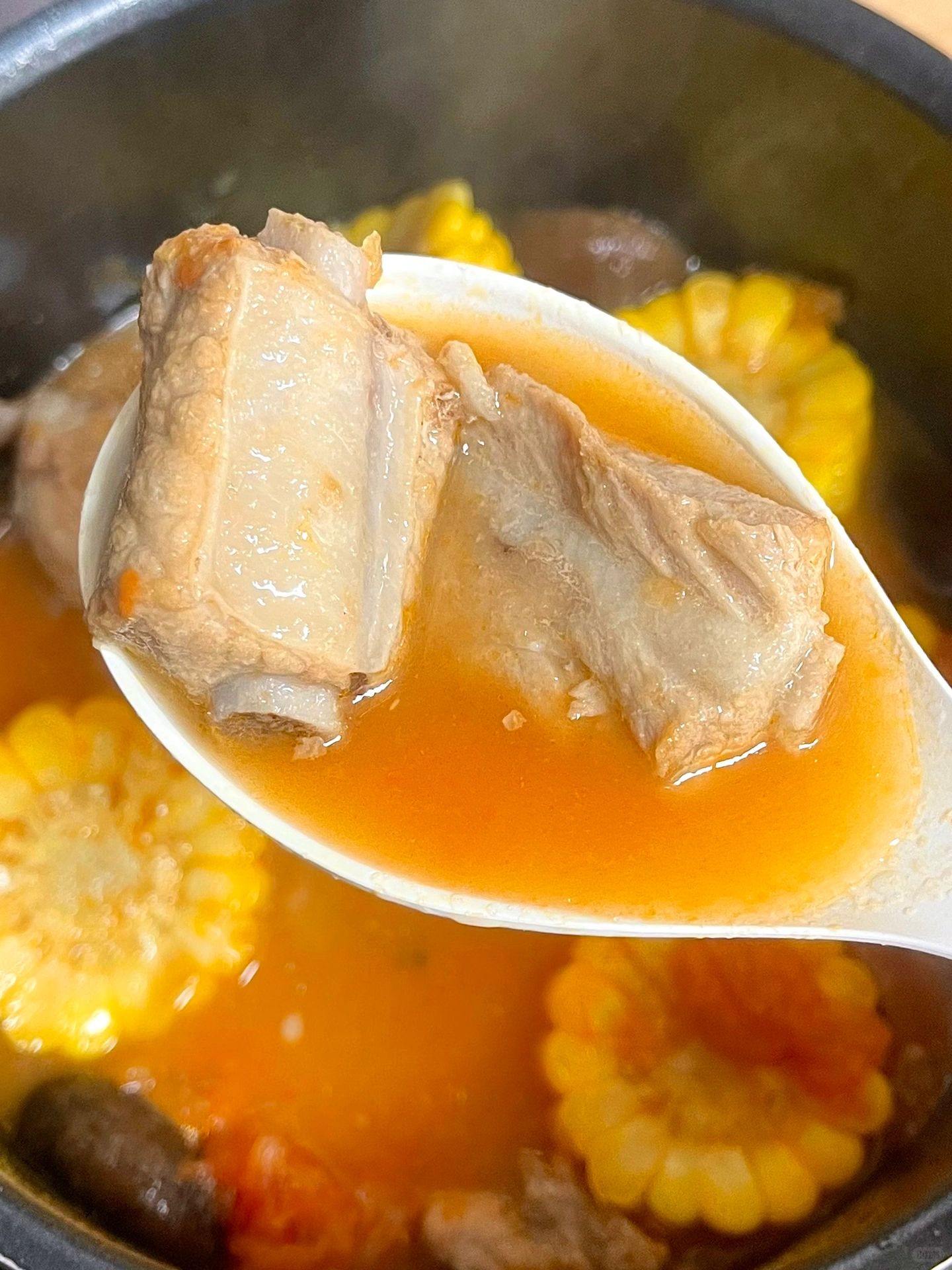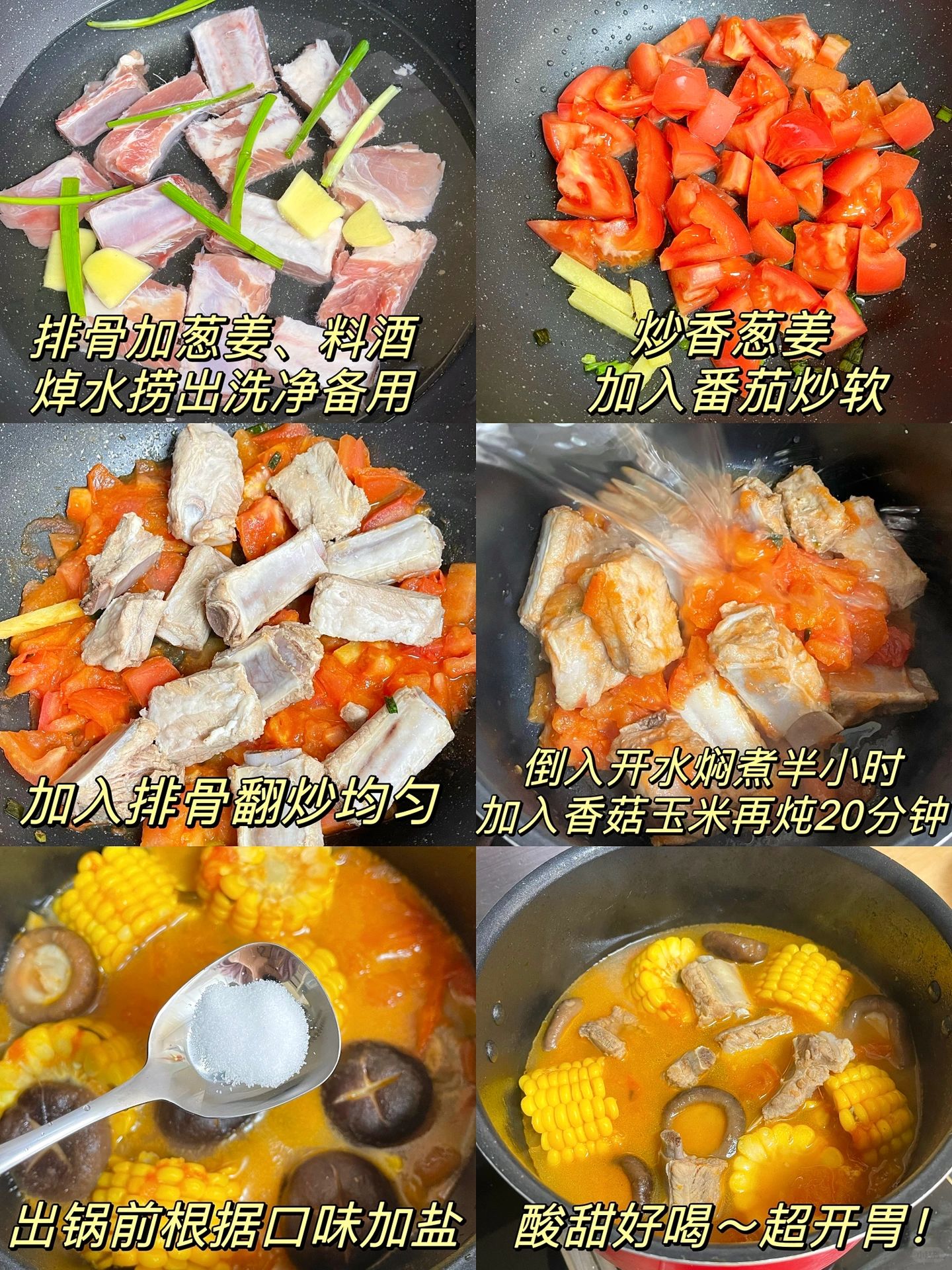 酸甜浓郁的番茄排骨玉米汤!! 清甜的玉米 软烂脱骨的排骨 酸甜的茄汁 太太太满足啦!! 没食欲的时候来上一碗贼开胃~贼好喝! 步骤如图 超简单~赶紧去试试!