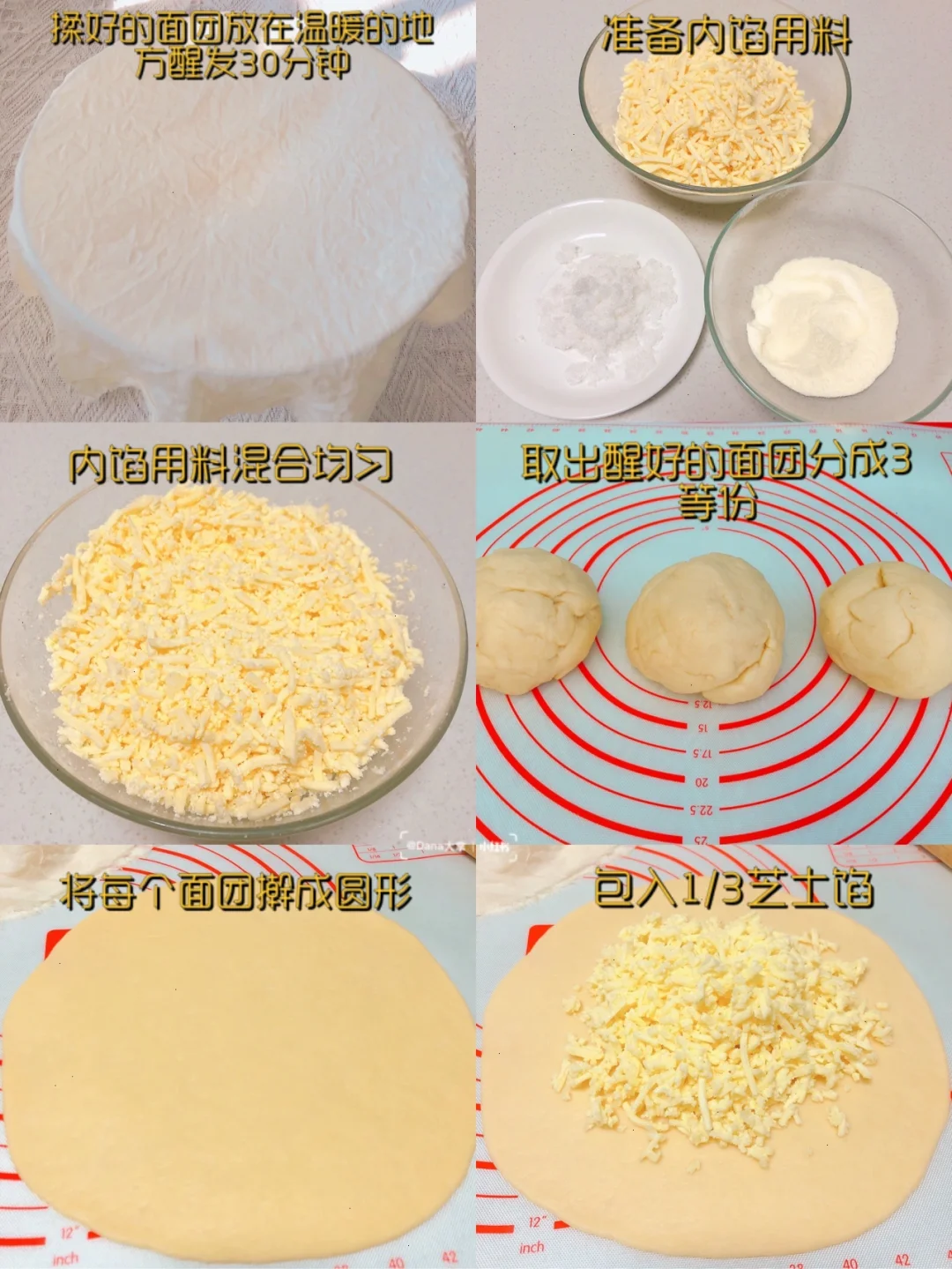 📌本文分享的用量可以一次做3个奶酪饼,如果做1个,所有用量1/3即可。
