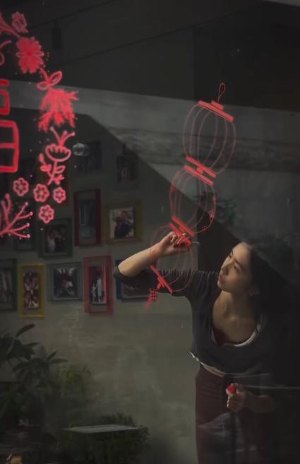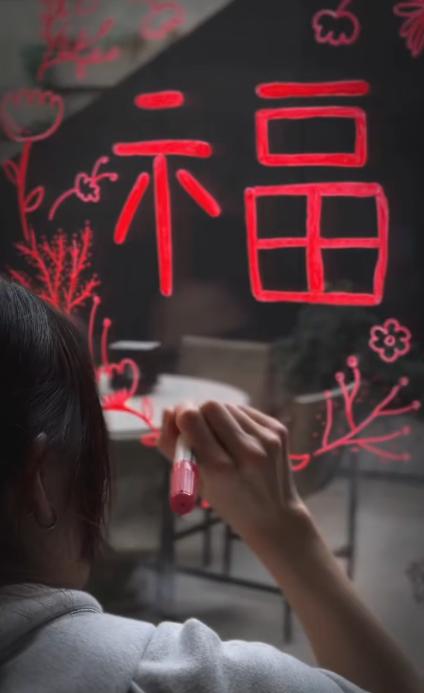 视频中黄多多手绘窗花,多妹穿着红色毛衣扮鬼脸,过年气氛拉满!