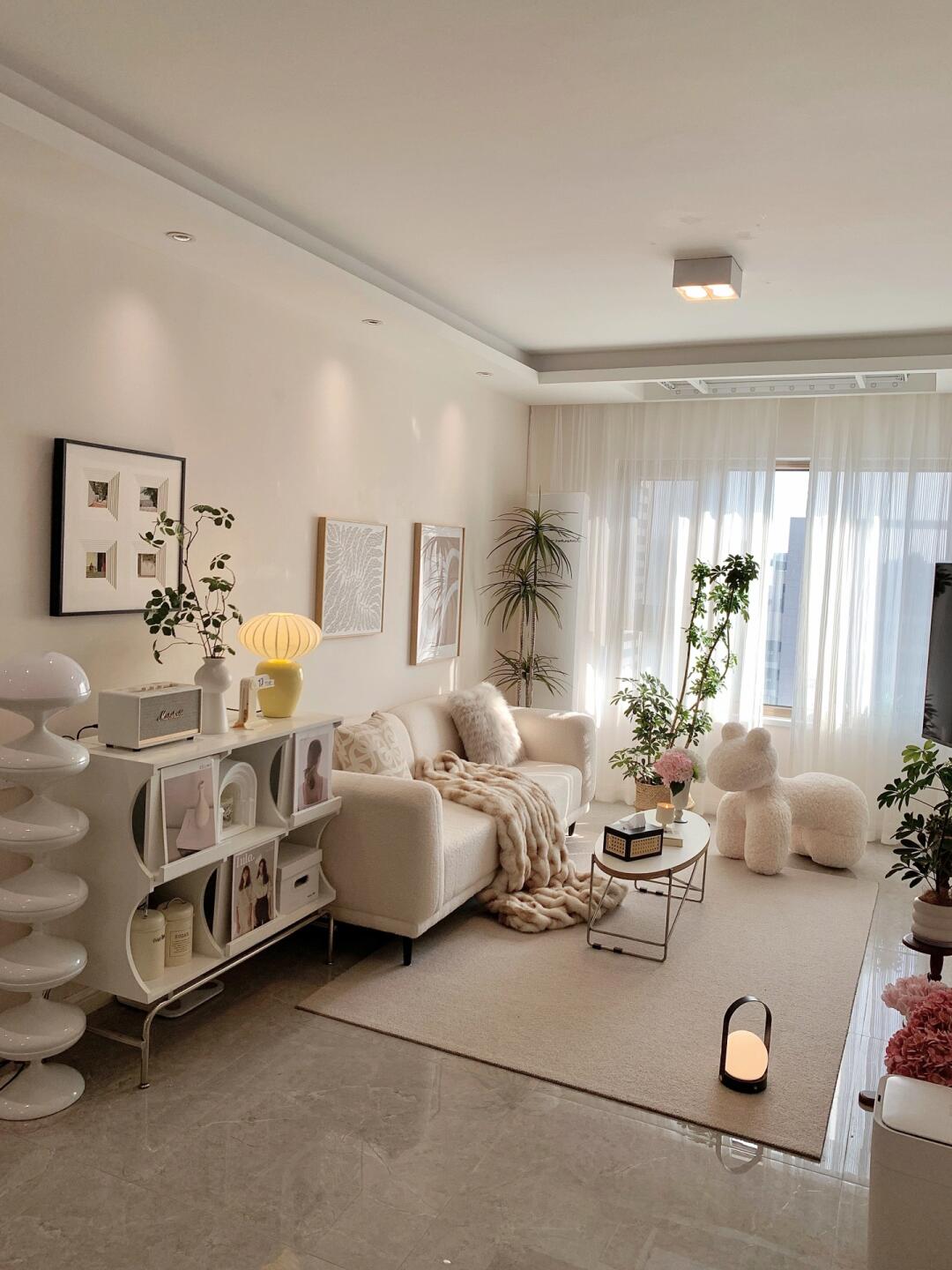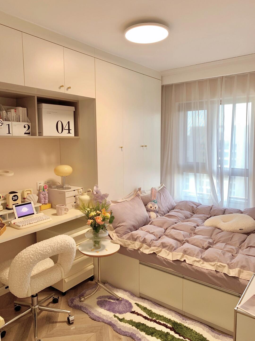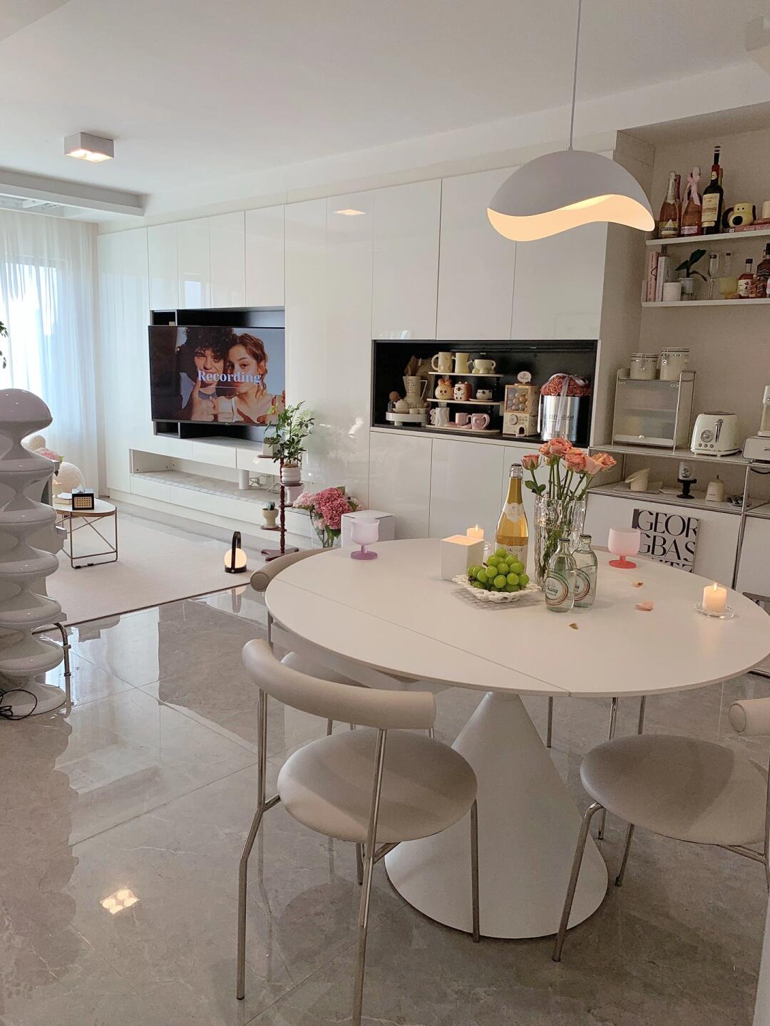 当然是我滴家呀![害羞R] 温温柔柔的奶油风,阳光☀️顺着缝隙洒进来 宅家时光真的太美好啦! 把喜欢的一切装进房子里,无关风格 奶呼呼的地毯、沙发和软装 餐桌也是奶油哑光白色,搭配了复古风的椅子 桌子可以通过旋转方桌变圆桌 聚餐的时候用圆桌平时收起来也不占地方 颜值与实用我都要[哇R] 主卧是粉灰撞色满足我的少女心 榻榻米既是书房又可以休闲娱乐 真的好爱我的小窝呀![大笑R]