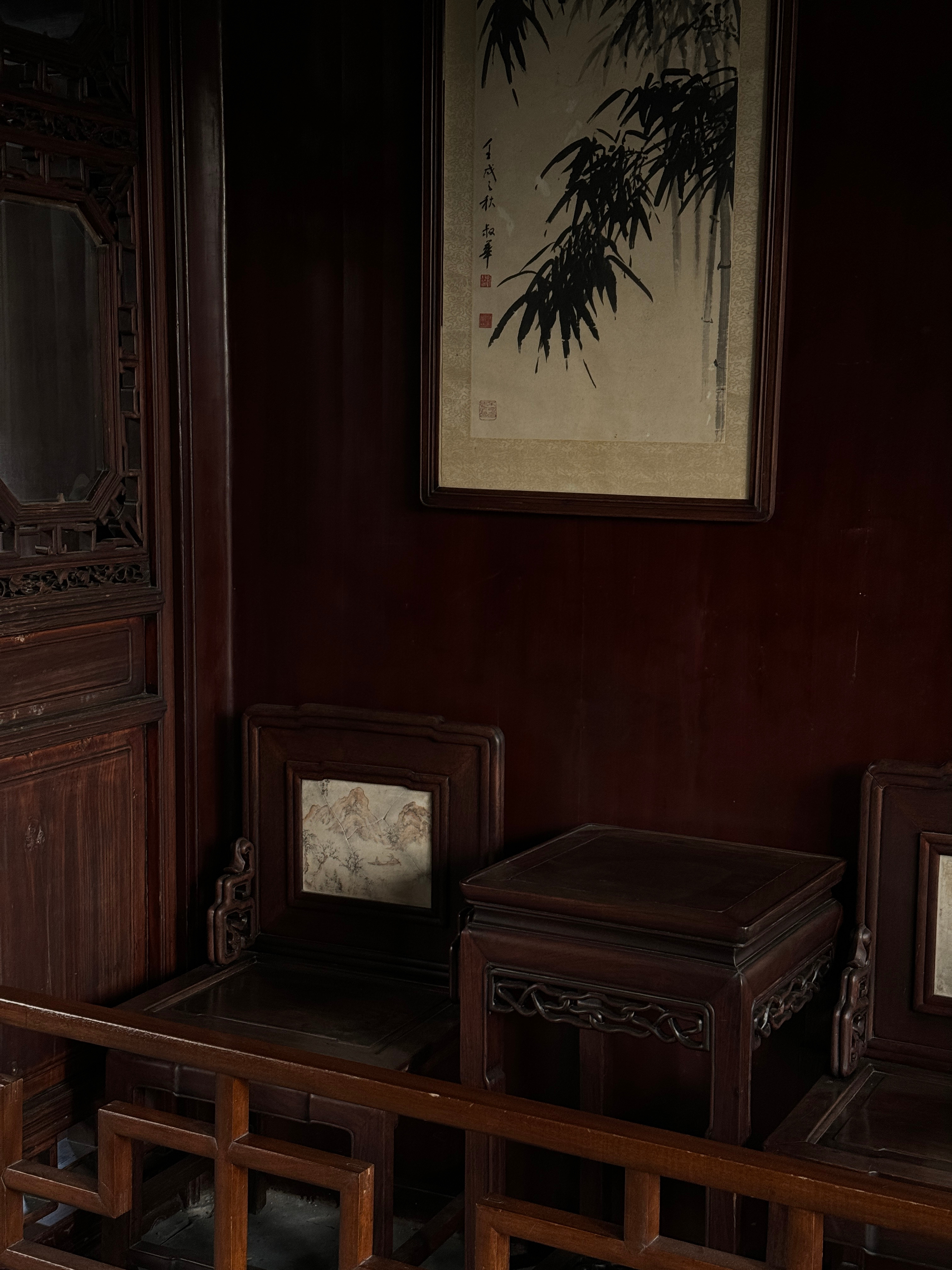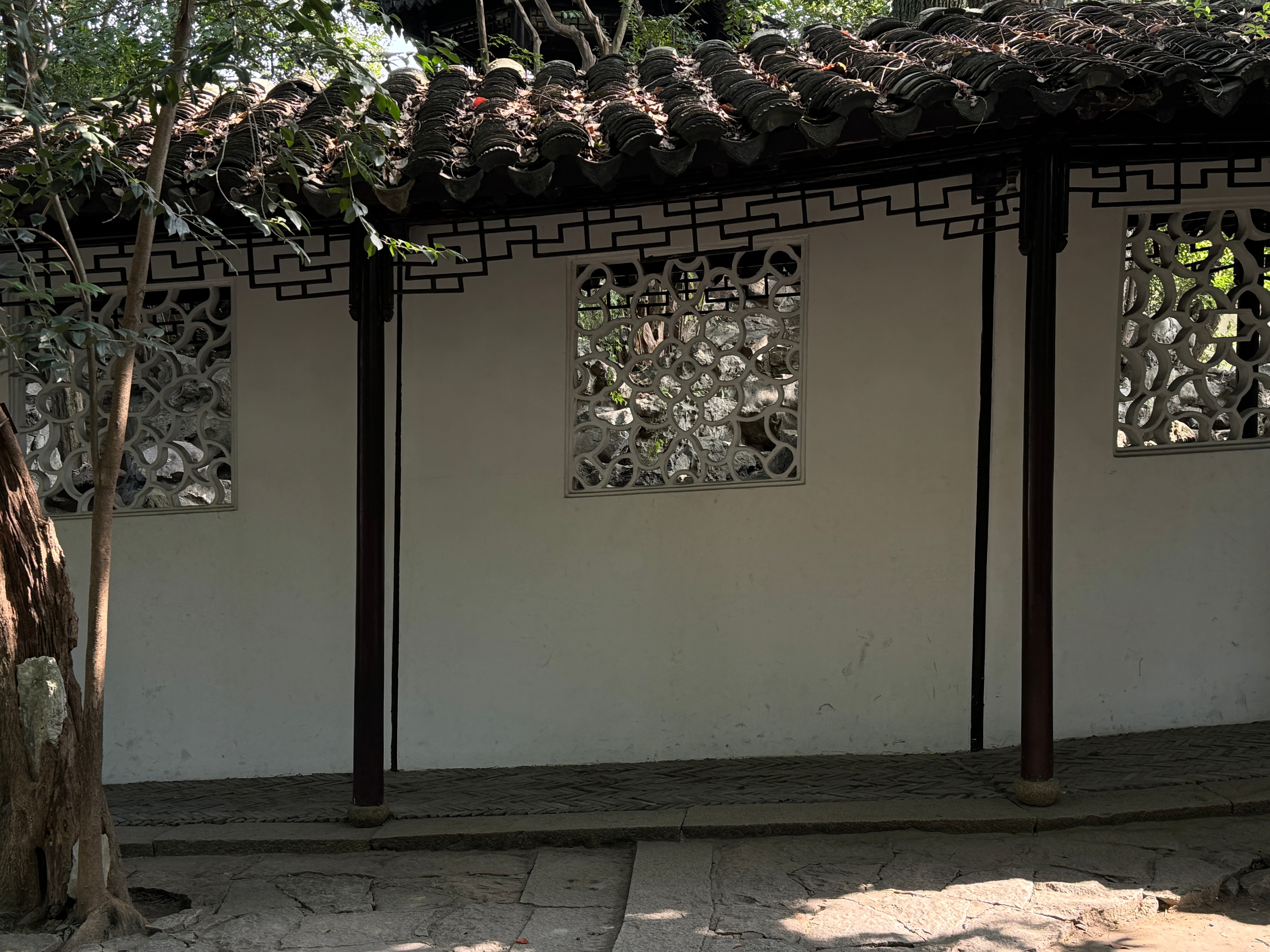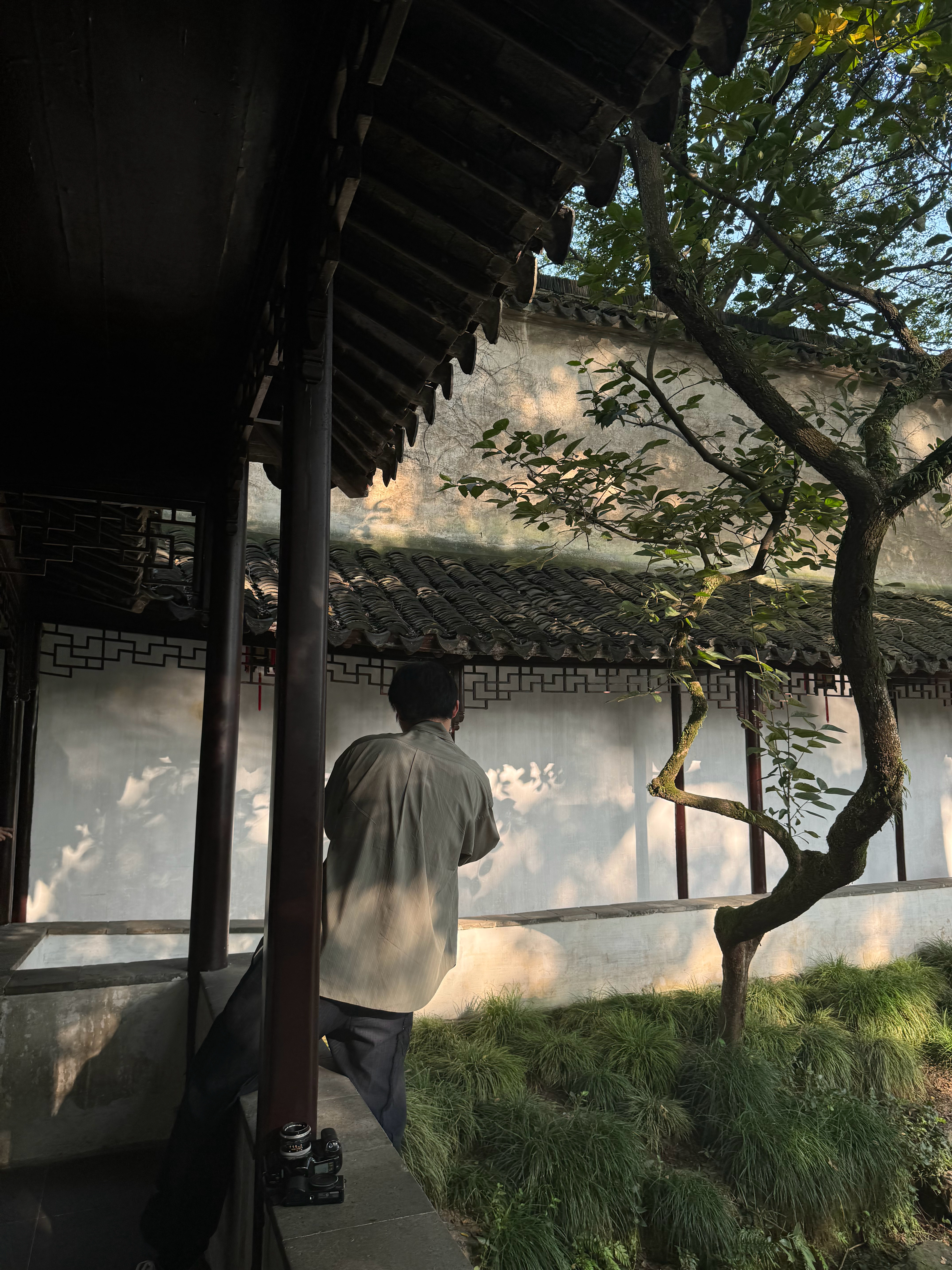 这次格外喜欢园林里的长廊。在留园鲜少有人经过的一个小角,靠在走廊的柱子旁发呆,在某个时刻仿佛万籁俱寂,我好像听到了桂花飘落的声音。