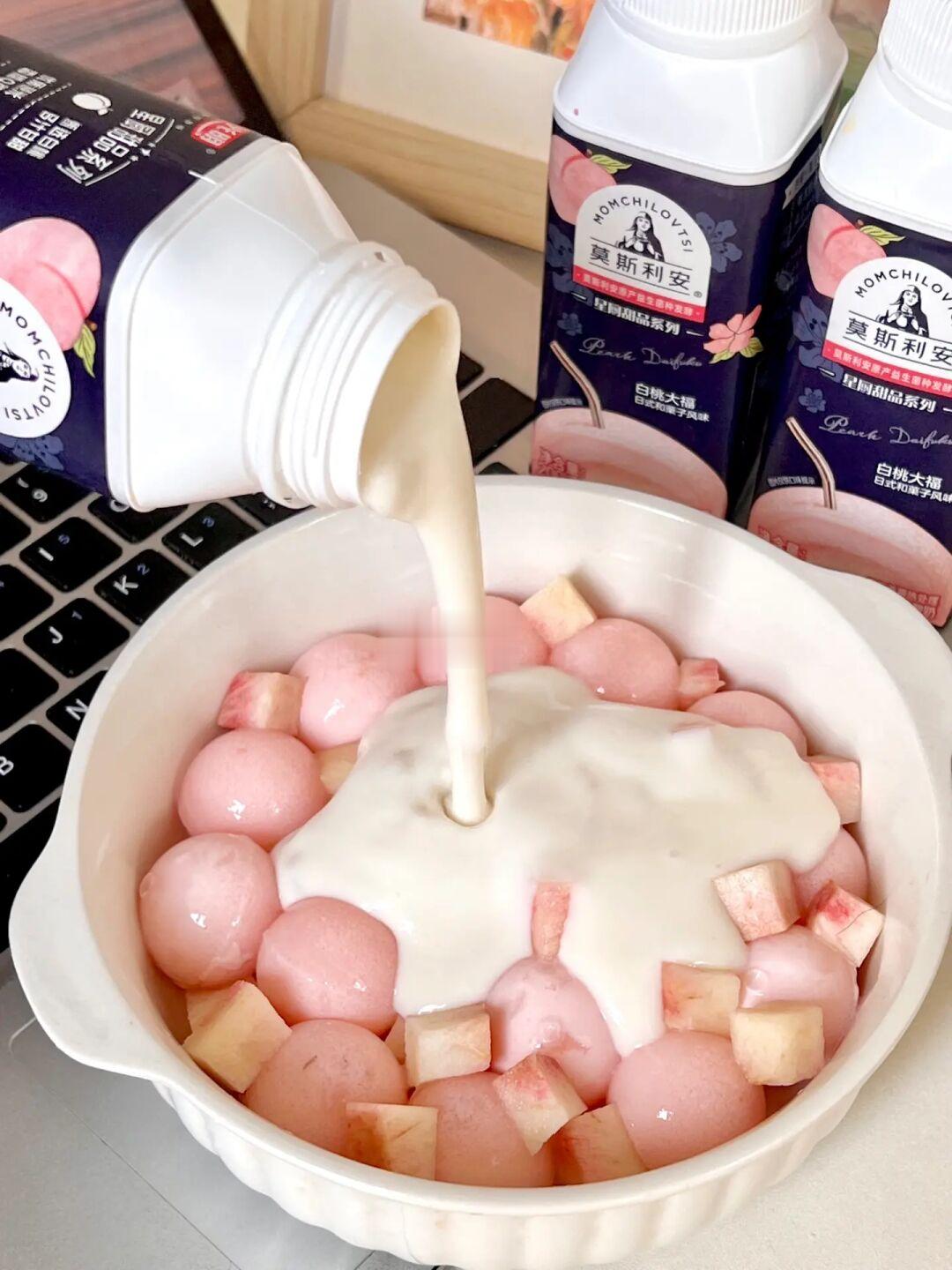 加了莫斯利安白桃大福酸奶拌着吃 就像在吃甜品🍧一样!好爱!
