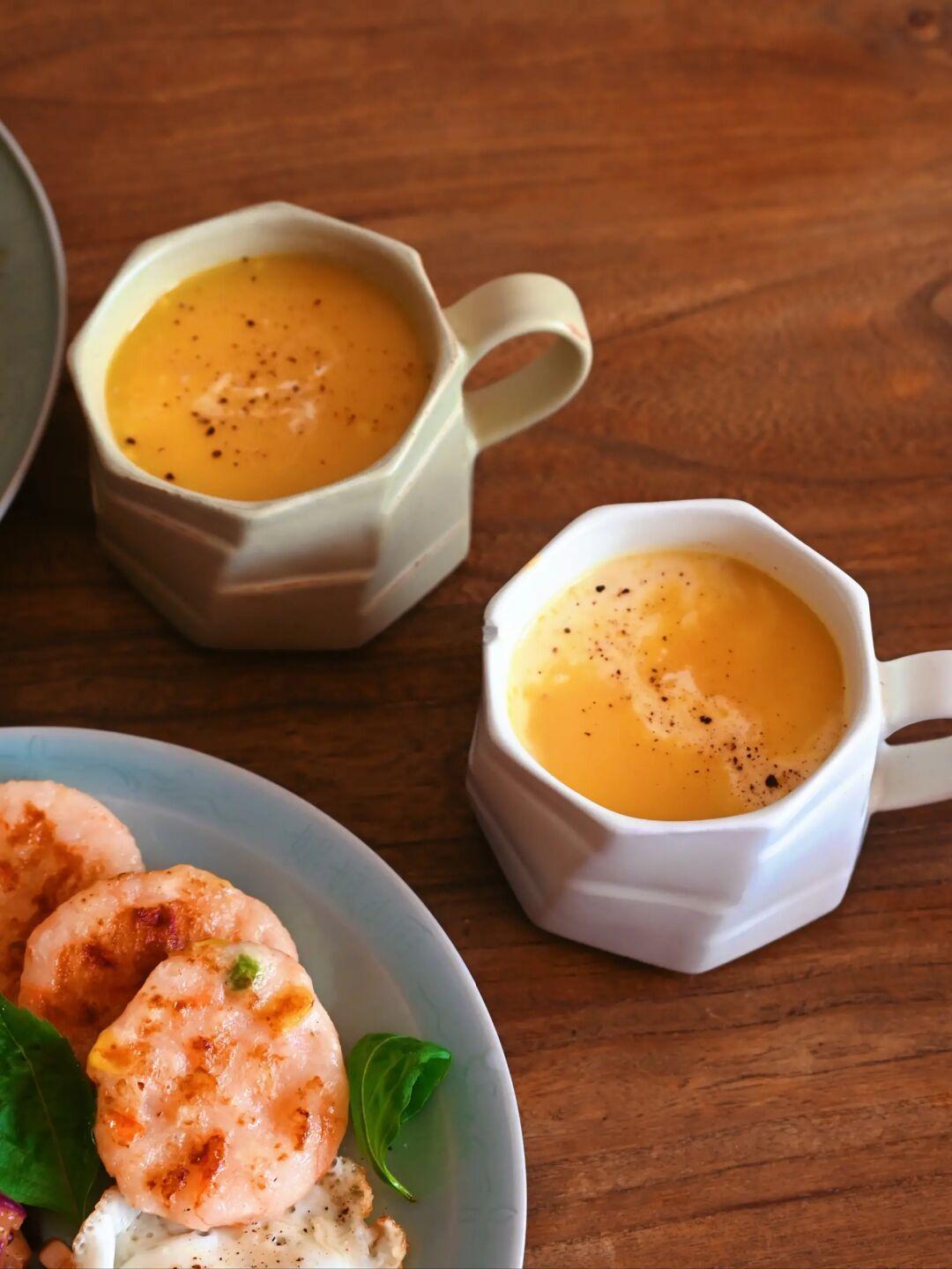 秋天的早餐喜欢暖色系的,黄的南瓜汤、红的鲜虾饼吃着看着都感觉很温暖。