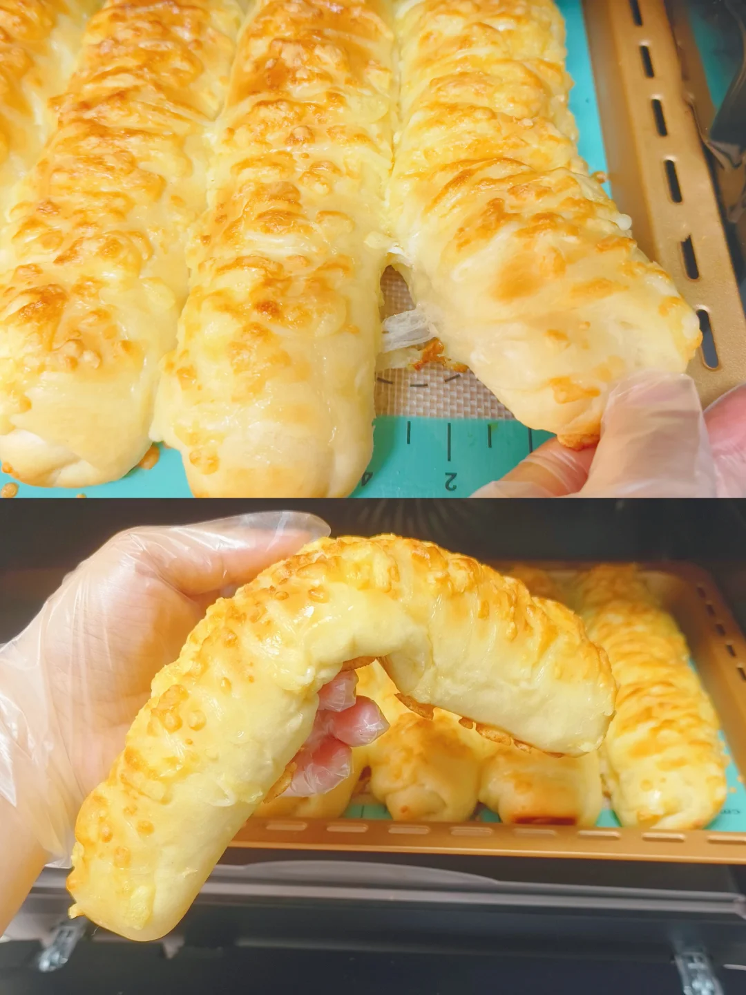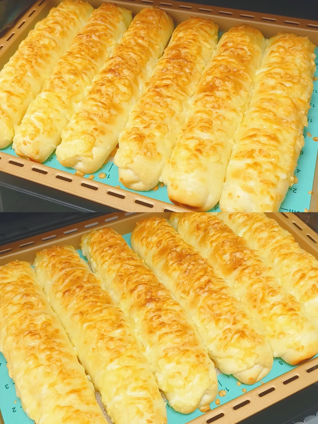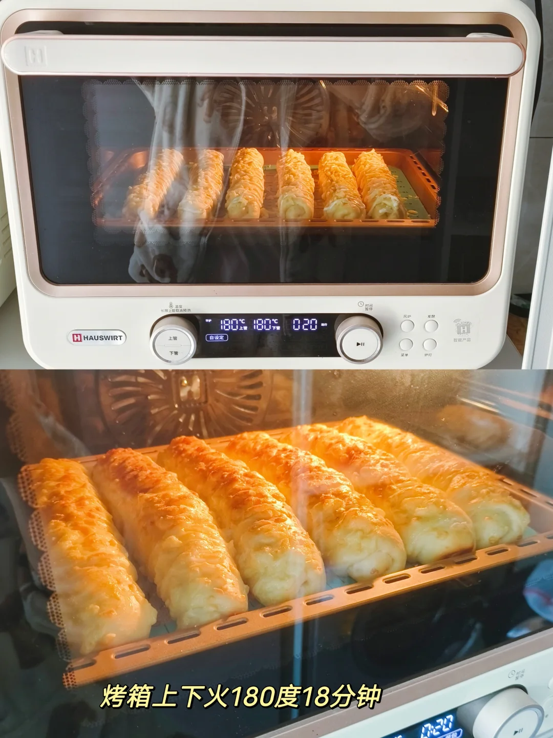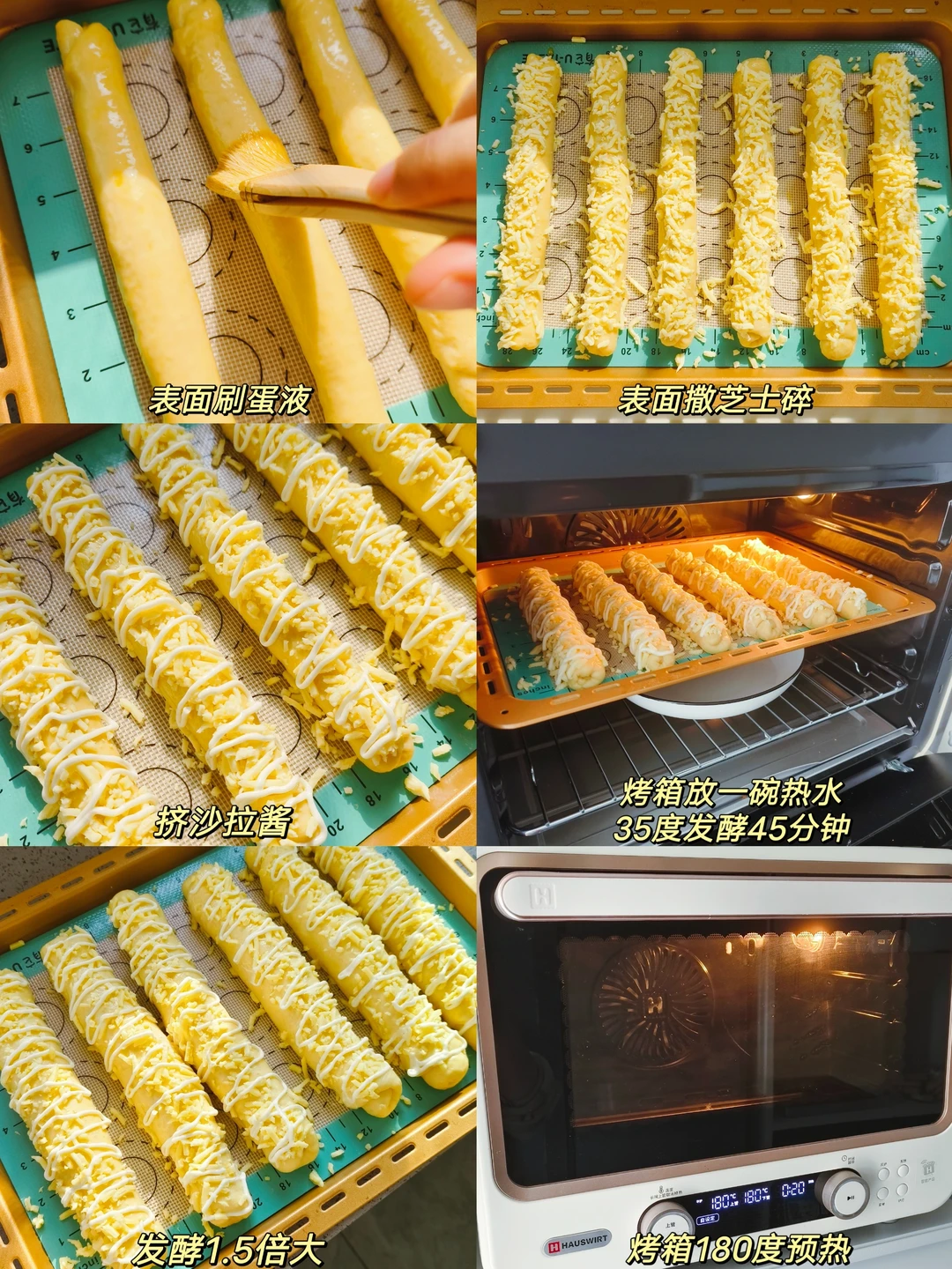 [三R]表面刷蛋液,撒芝士碎,挤沙拉酱,烤箱35度二次发酵45分钟,发酵1.5倍大,烤箱上下火180度18分钟,出炉啦~