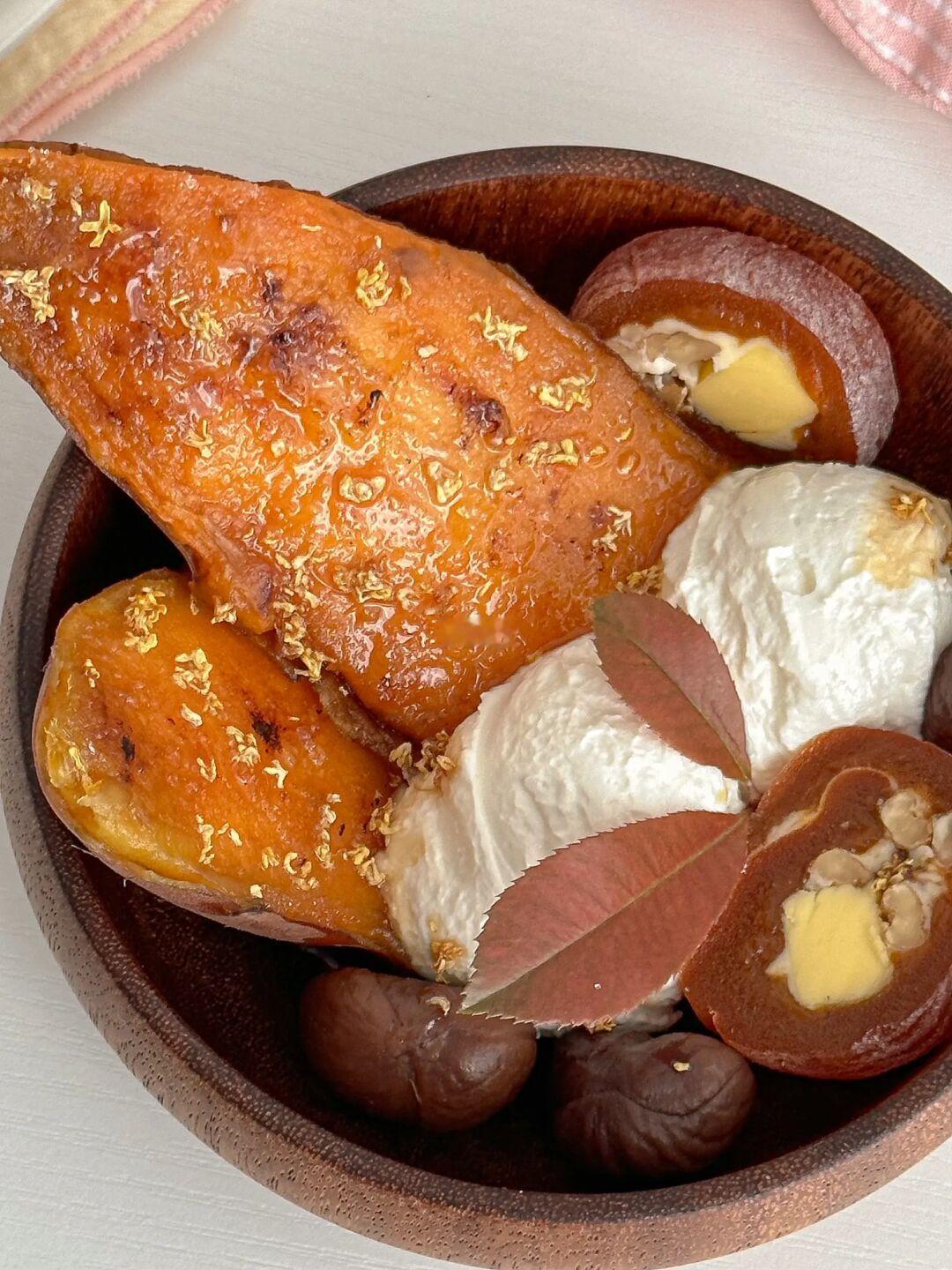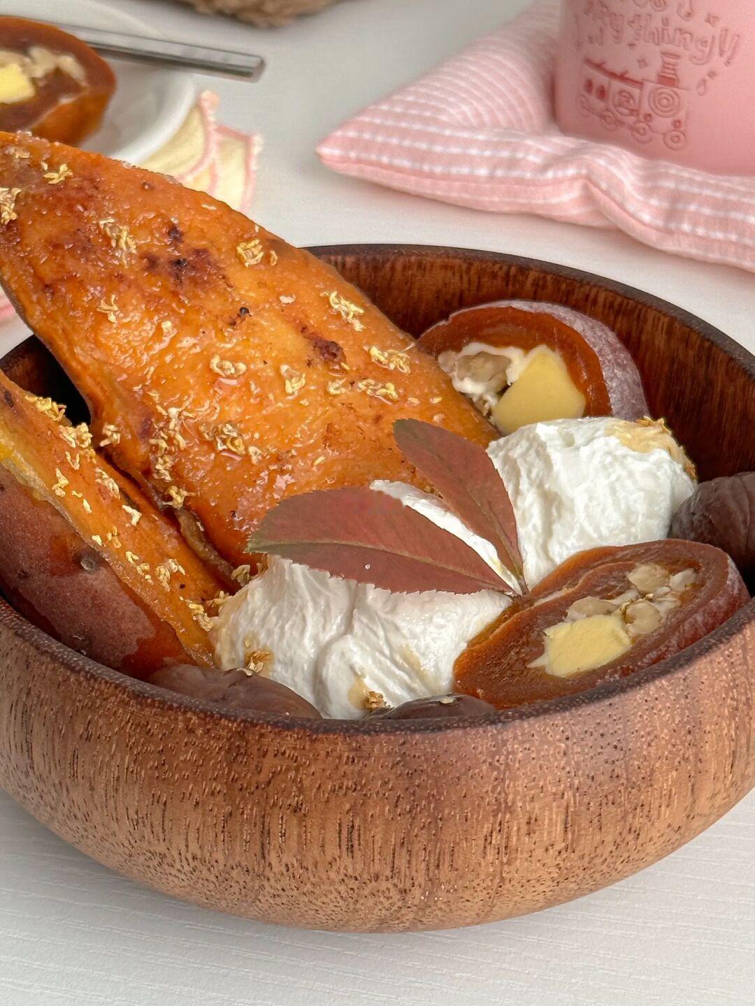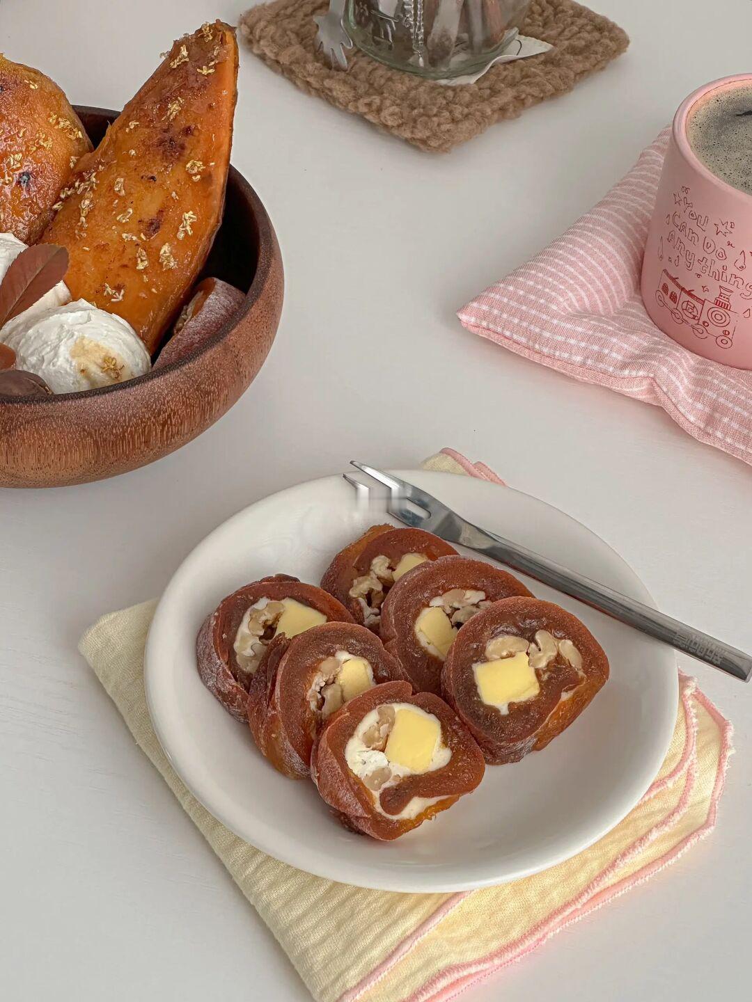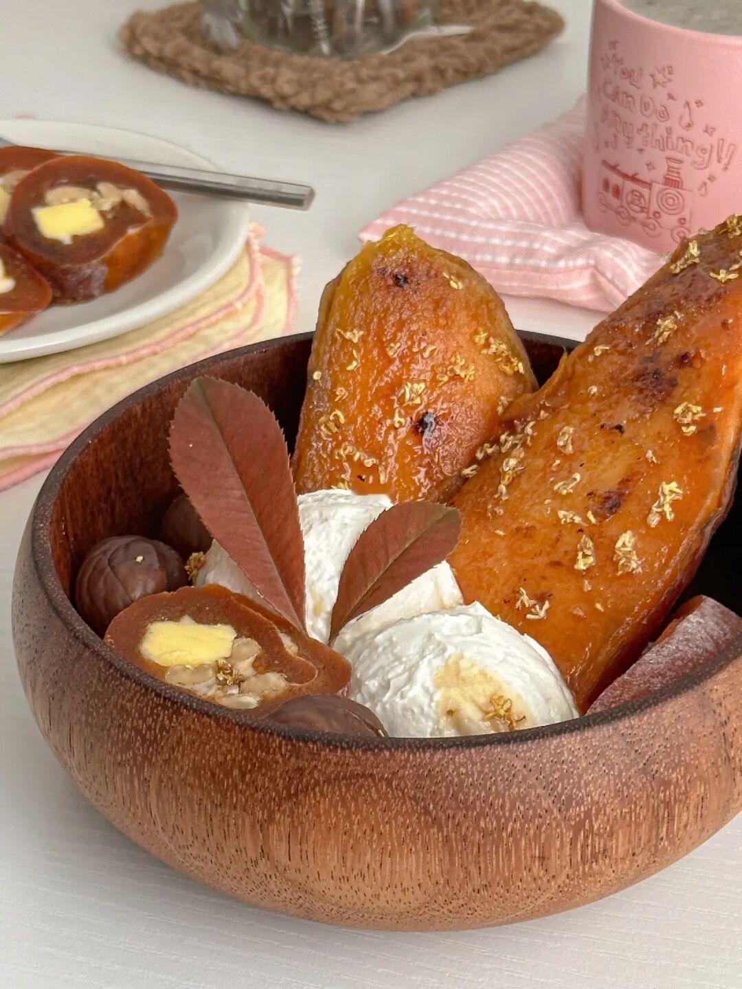 ☀️早餐🍁黄油柿饼烤红薯🥣酸奶碗