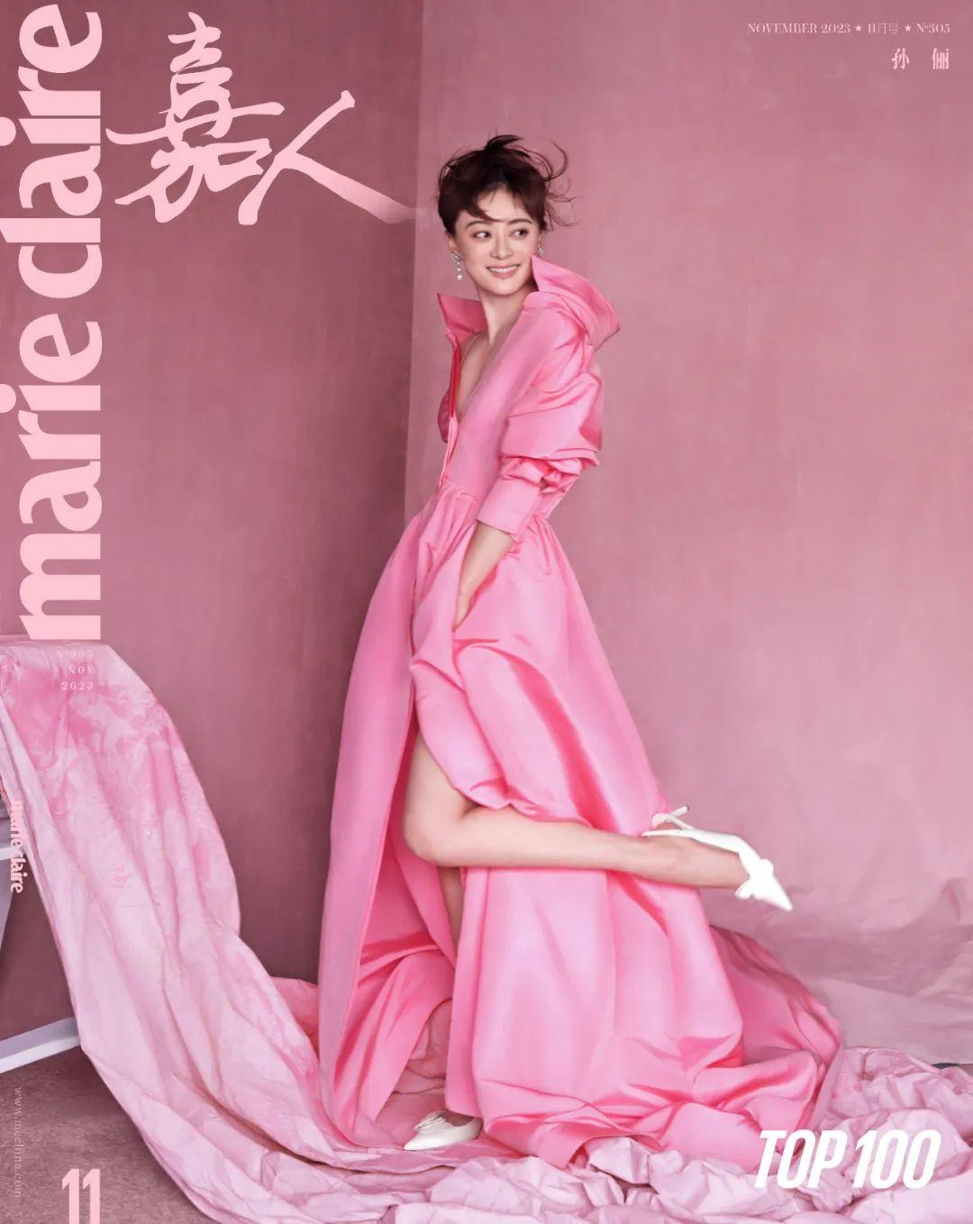 今年41岁的中国女演员孙俪穿上了粉色的华伦天奴 VALENTINO 时装登上了《marie claire 嘉人》杂志的2023年11月刊封面。 我觉得这期封面很好看,因为孙俪自信舒适,所以无论几岁,都可以驾驭娇嫩的粉色!