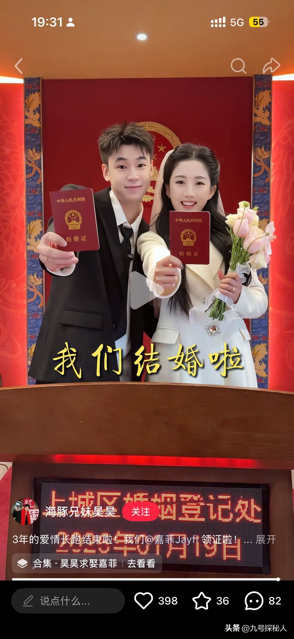 2026年1月19日,在这个寓意“再久一点”的日子里,薇娅公司又传来喜讯:主播昊昊与嘉菲领证了。