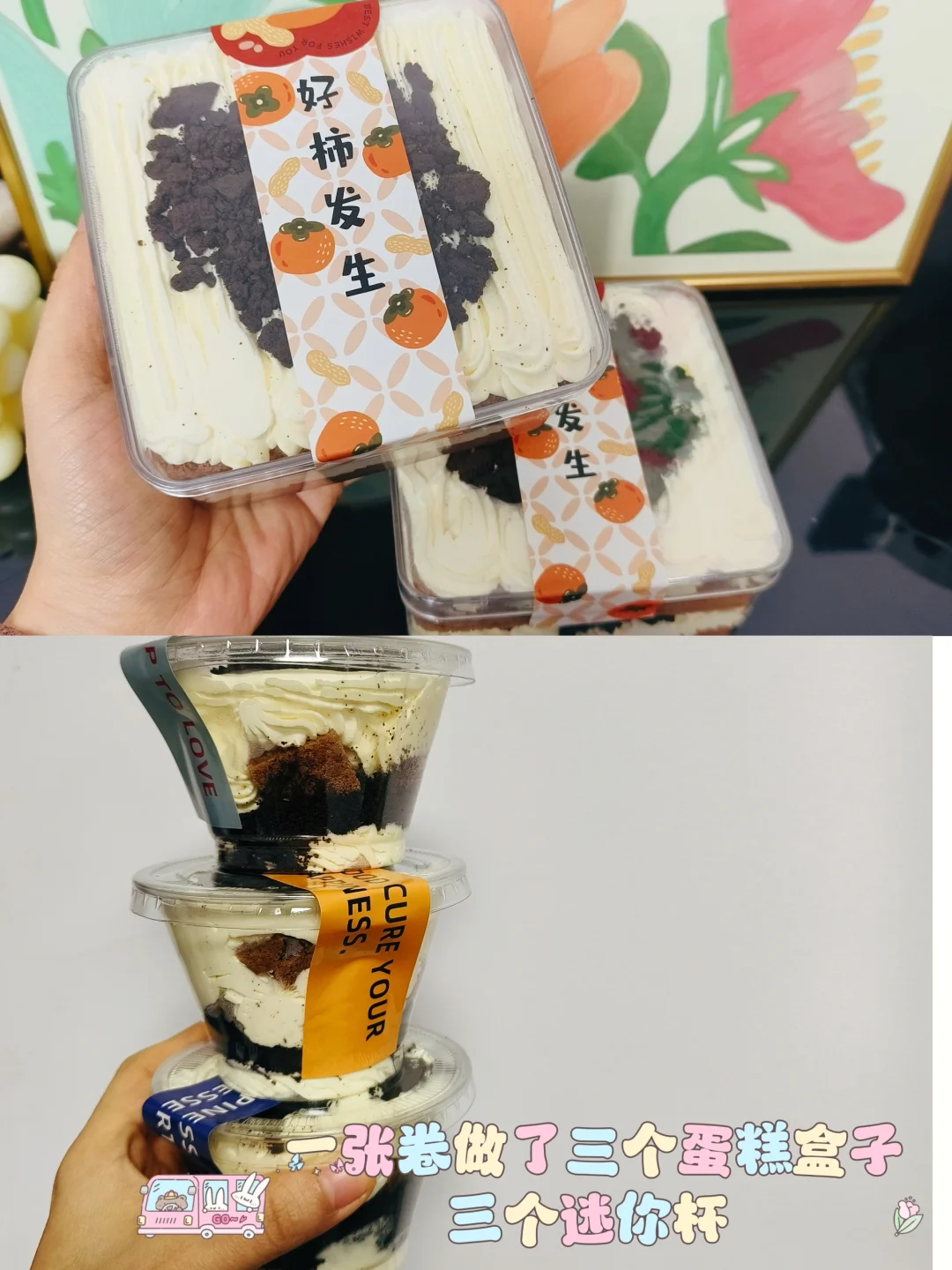 这次一张蛋糕卷我做三个蛋糕盒子,三个蛋糕迷你杯