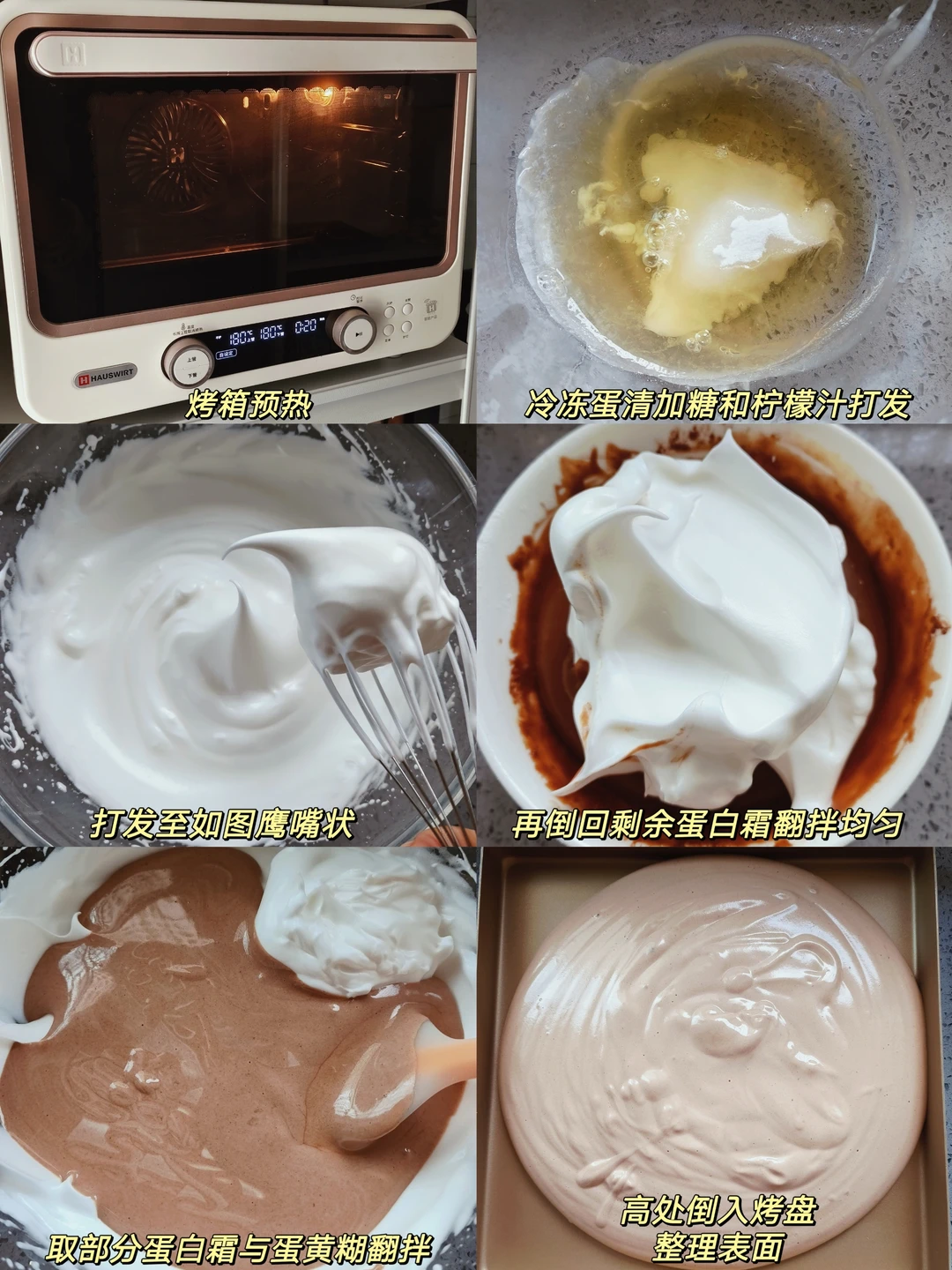 [五R]烤箱预热,蛋白提前冷冻10分钟,加入糖和柠檬汁打发。