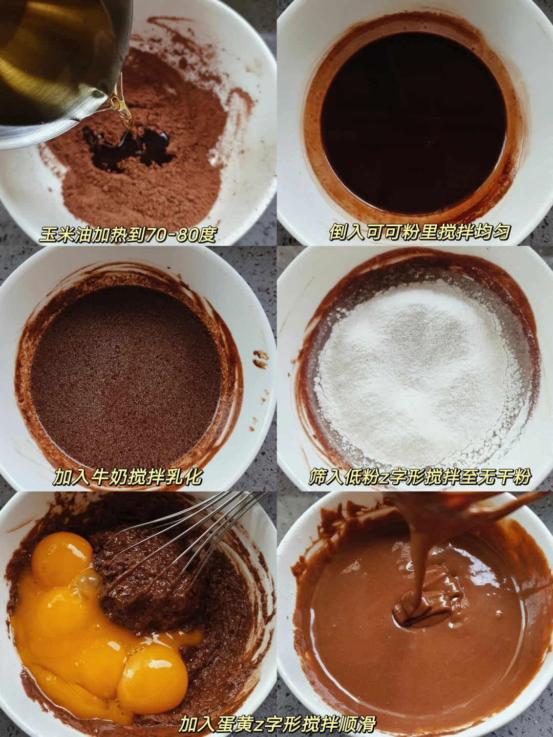[彩虹R]鸡蛋5个,玉米油50克,牛奶65克,可可粉15克,低粉60克,糖50克,柠檬汁适量