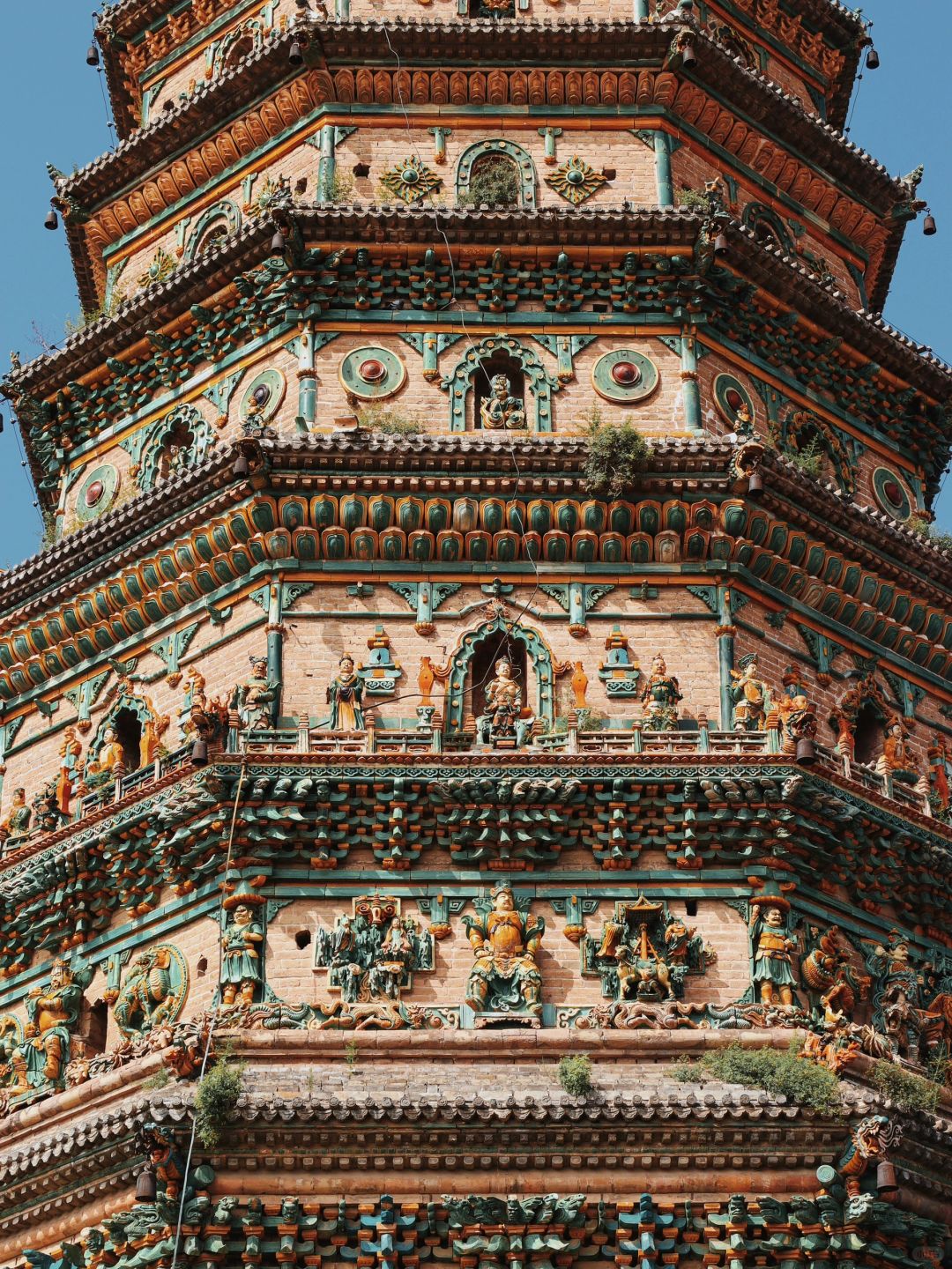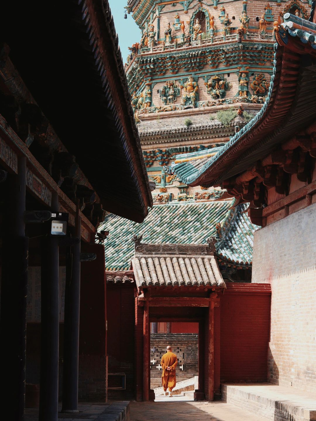 平遥不远处是琉璃之都「介休」,你不仅能在此找到「张壁古堡」外仅存的两块孔雀蓝琉璃碑,也能捋清最大琉璃鸱吻「华严寺」及最高琉璃塔「飞虹塔」都在晋地的原因。