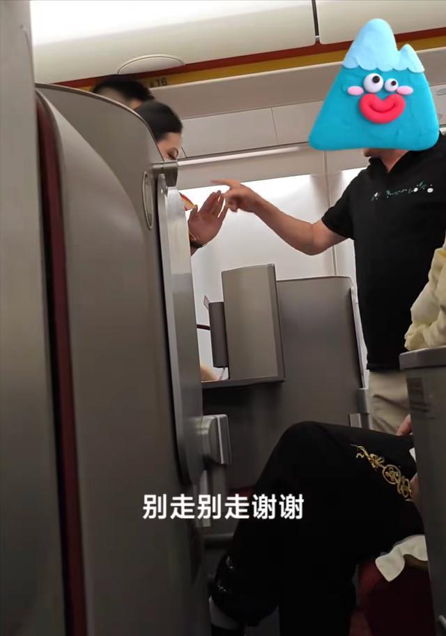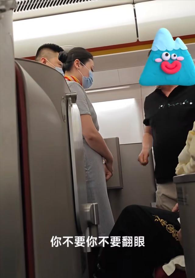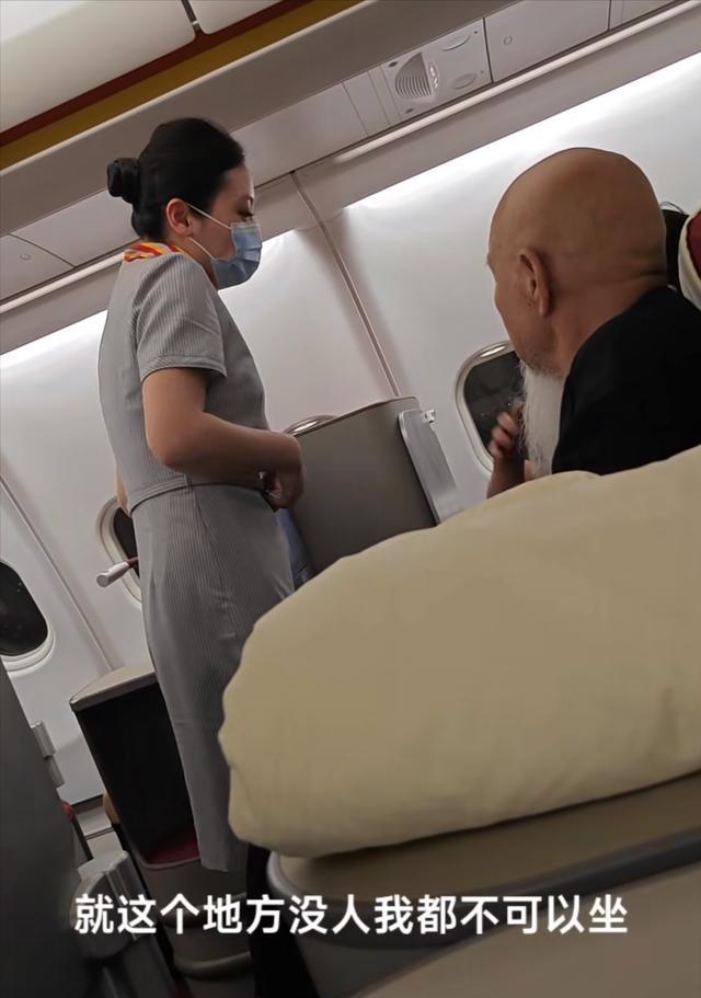 男子继续跟空姐强调他那个高龄的师父,不过又改口称是79岁,空姐脸上浮现出明显的不耐烦表情,无奈地暂时离开。