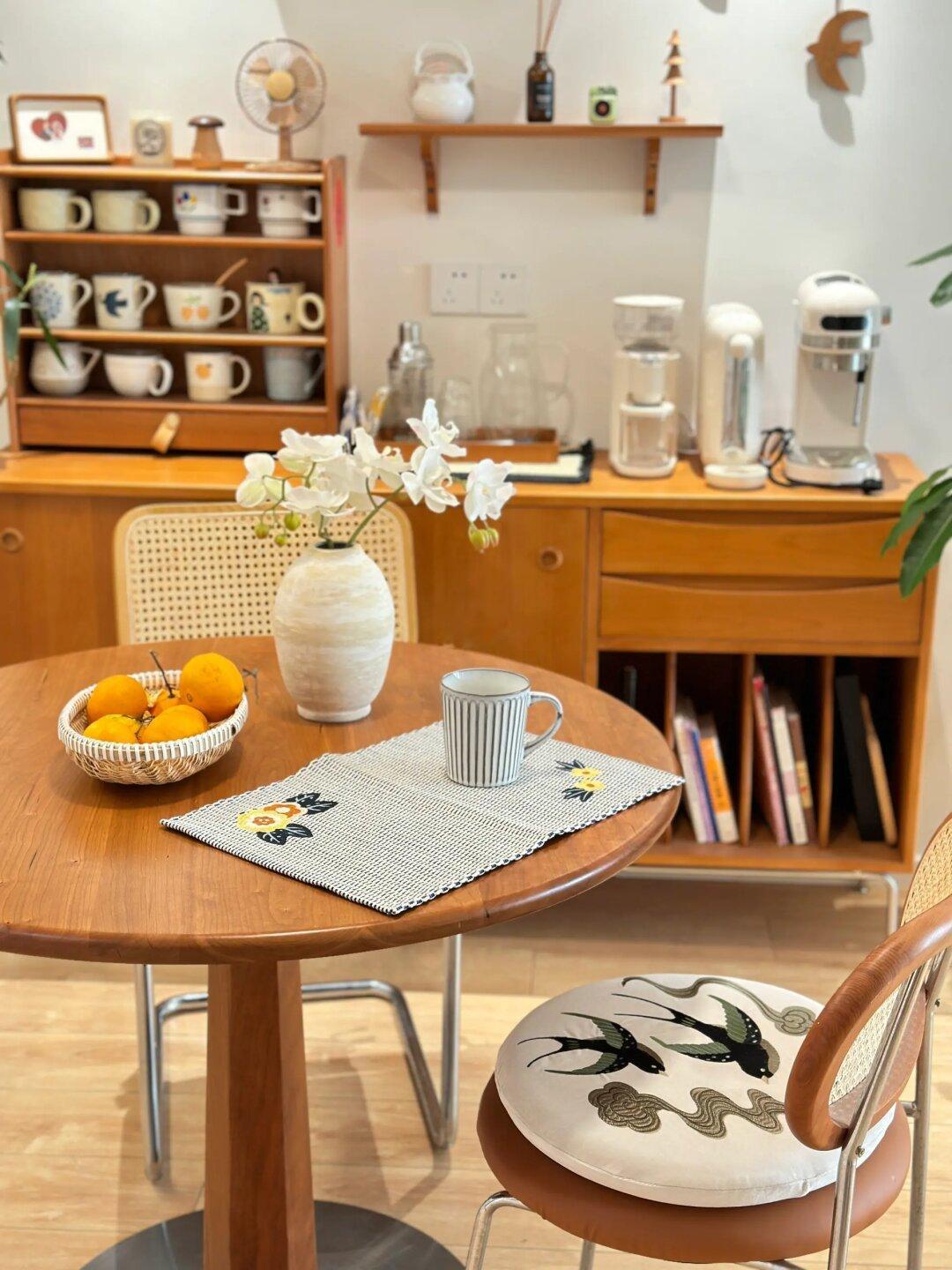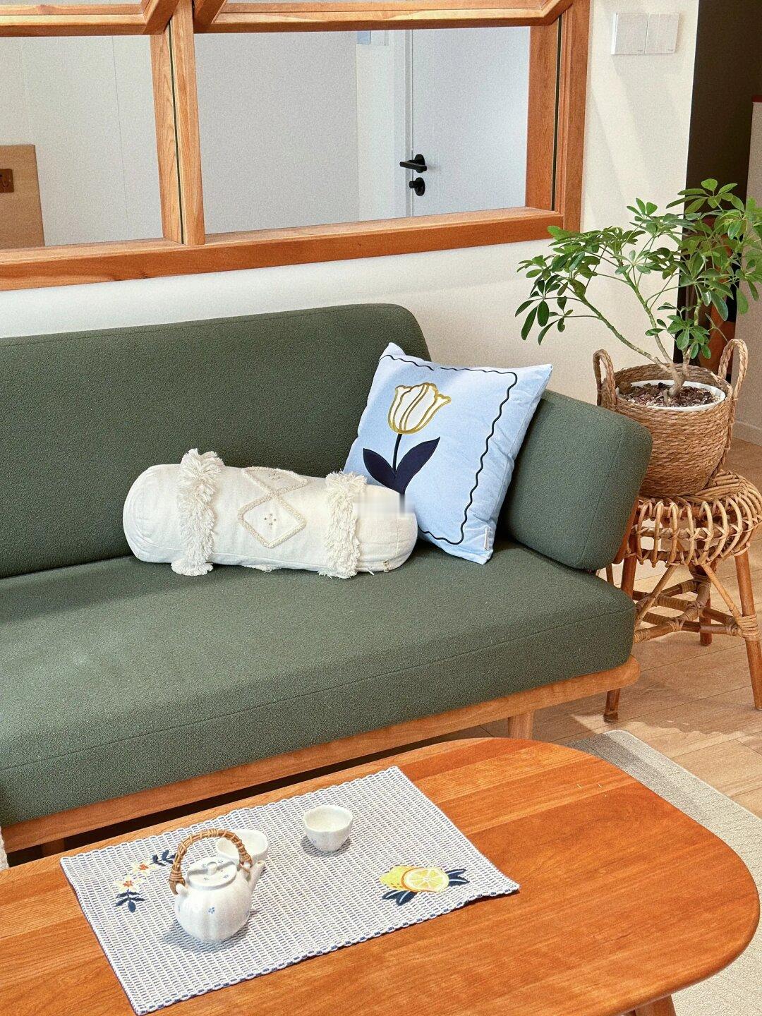 ◾️家居以棉麻、布艺、编织元素为主,无论是沙发、地毯、抱枕、还是餐垫、坐垫,都给人一种天然清醒的感觉,放松又治愈