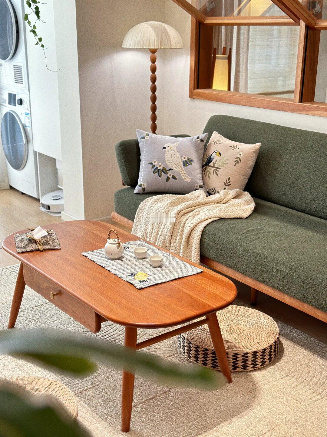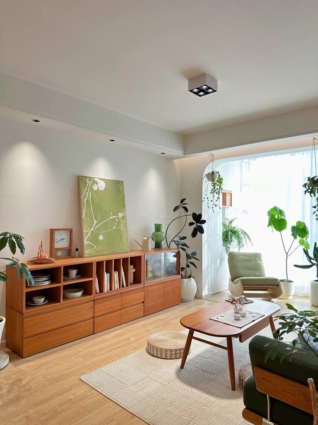 ◾️客厅不做定制柜,成品实木家具更有质感,也更加灵活可以根据需求随时调整