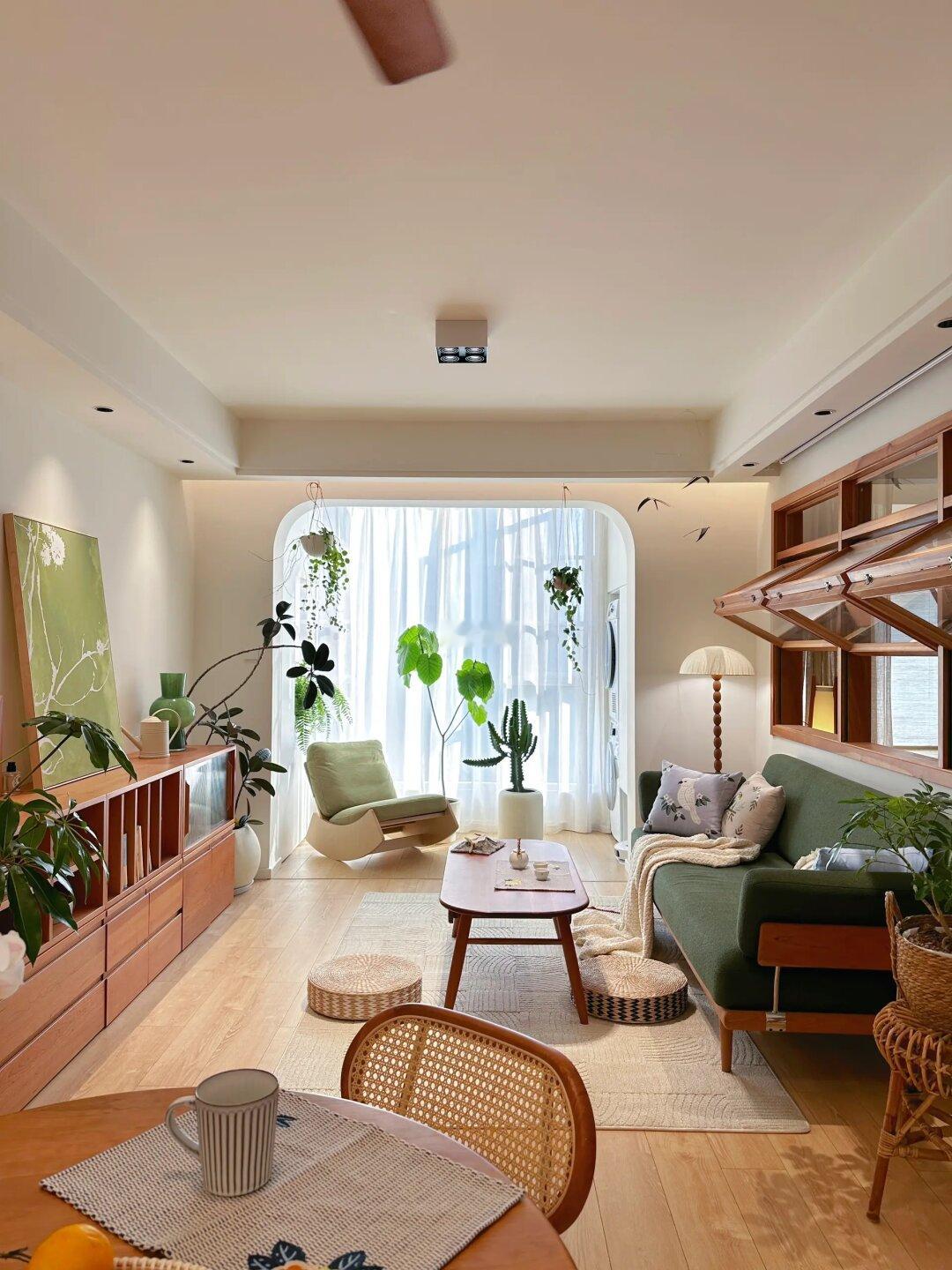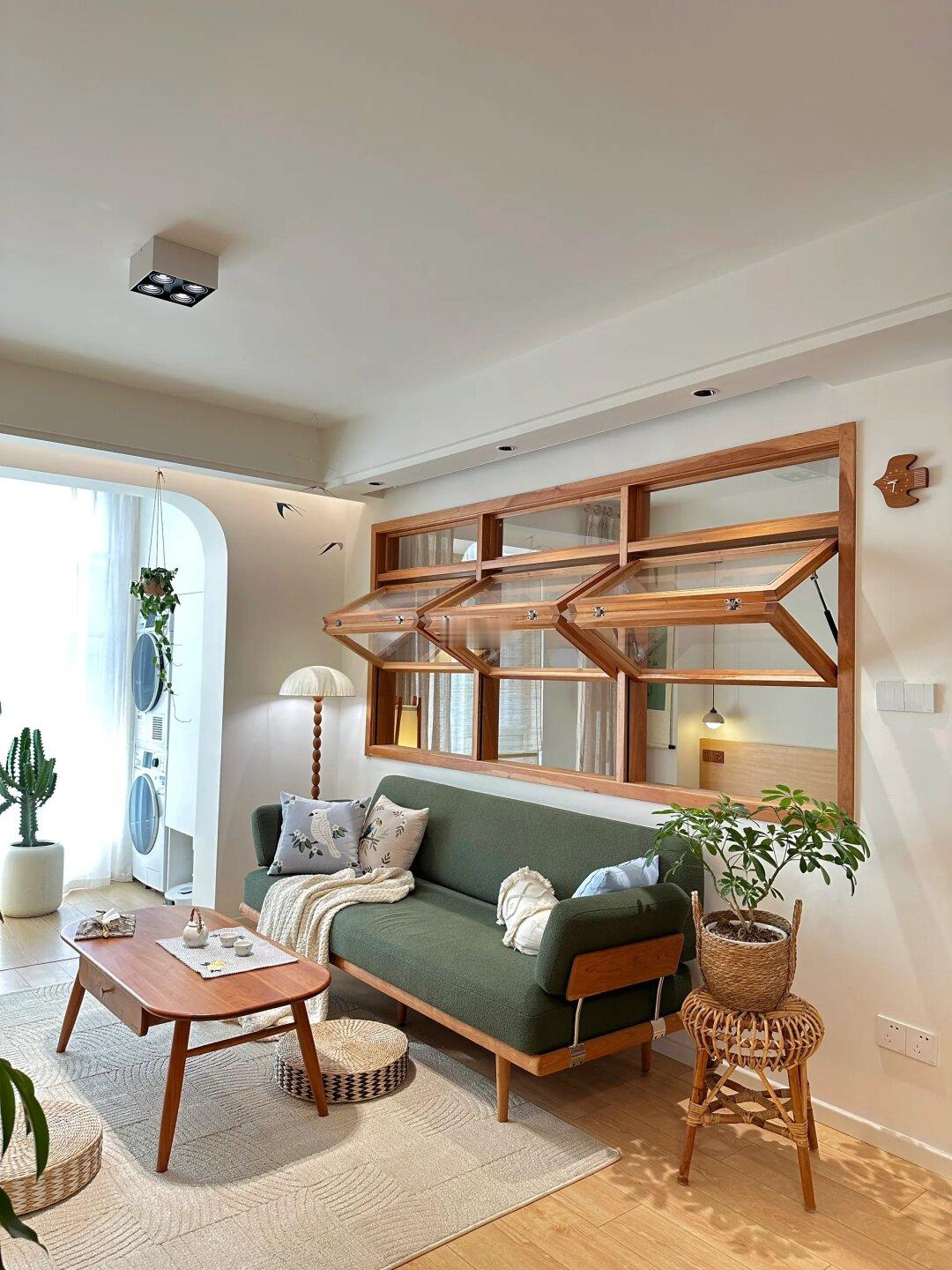 ◾️砸掉沙发背景墙做室内木窗,采光和通风效果更好,延伸视野让小户型显大
