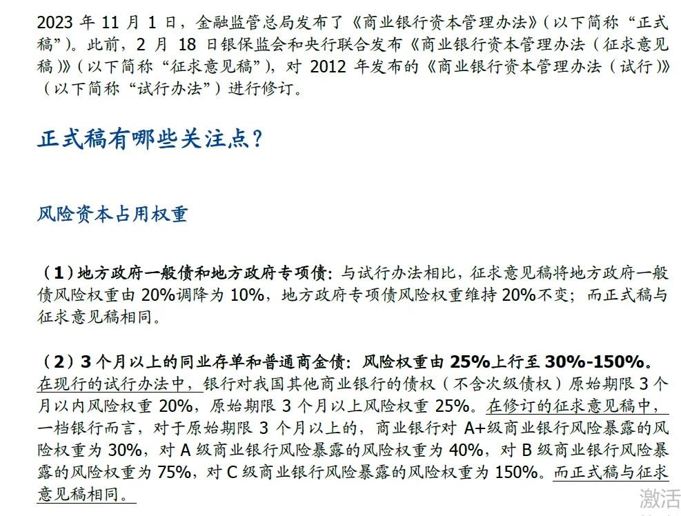 今日份工作小结 [微笑R]《商业银行资本管理办法》正式稿近期发布,其中的内容将对明年债券投资产生深刻而重要的影响,因此也是债券投研面试的必考问题之一,希望大家多多关注。