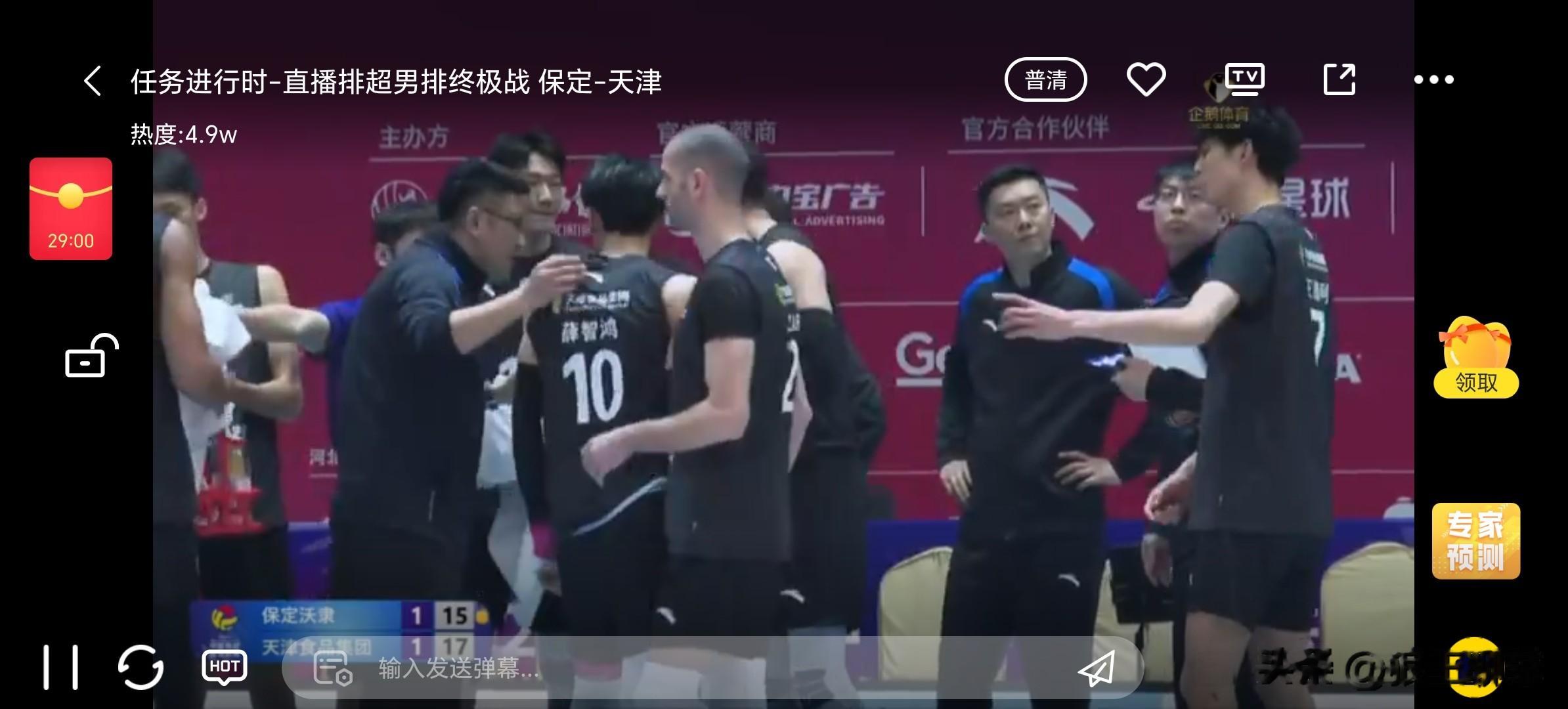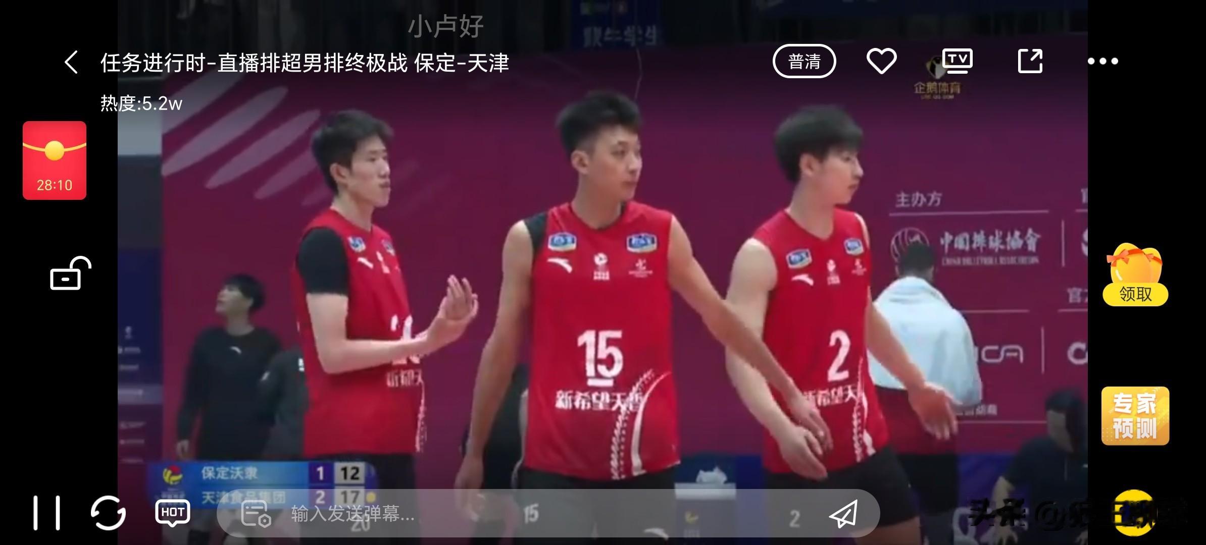 薛志宏进攻得分,打球太投入了,非常积极。阿利进攻打手出界10-14。河北进攻打手出界,阿利进攻被徐克拦住了11-14。薛志宏进攻得分,薛志宏发球直接得分,追发徐克,徐克失误了,又发球得分12-17。河北男排暂停了。暂停没有干扰到薛志宏,温子华进攻打下去了13-17,温子华进攻失误,连续性得分还做不到啊!天津发球下网14-18。