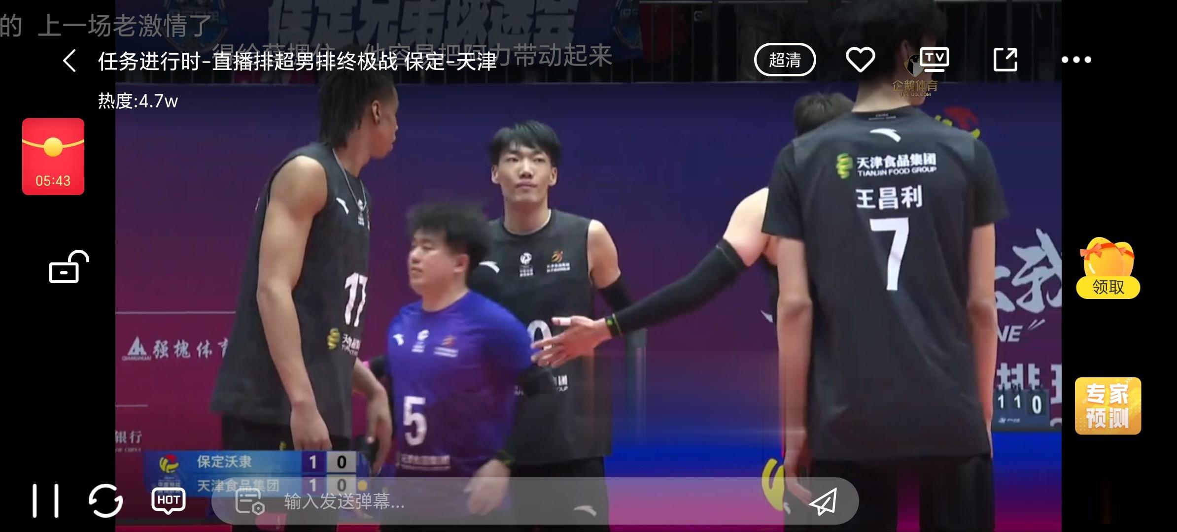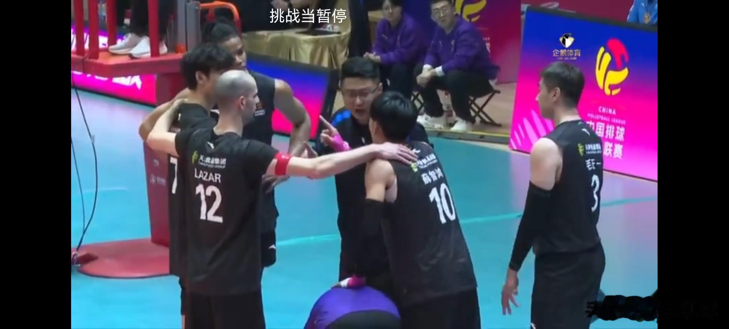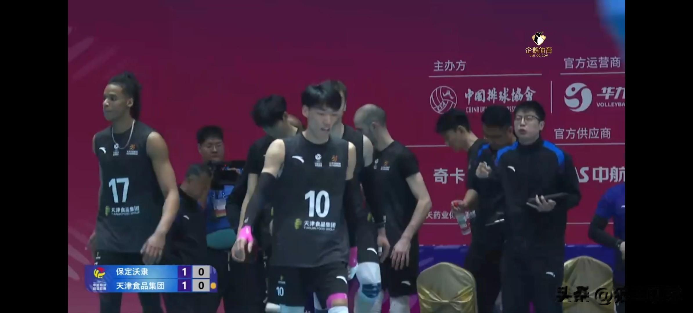 前两局河北男排1-1战平天津。双方回到同一起跑线,第三局河北男排徐克进攻出界,天津王昌利发球出界1-1,河北男排没连接上,防守没防住,河北男排15号进攻得分,被判界外,挑战打手成功,打到阿力的手了。阿利进攻打手出界,天津发球滚网,河北无攻,天津进攻得分,阿利拦住了翔宇2-5,温子华进攻,天津防飞了,没追回来。随翔宇发球直接得分5-6,拉扎尔自接自扣得分,天津发球出界,王浩田拦网得分7-7打平了。