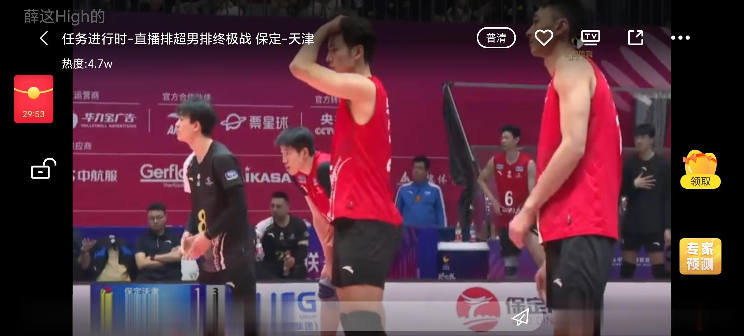 拉扎尔进攻打中18-21,薛志宏进攻打中,天津左右开弓,两个点都能下分,河北这连就靠温子华,有些困难。挑战触网成功,今天这裁判太多挑战成功了。阿利生气了。薛志宏进攻打中19-21,不要受一个球的影响,天津毕竟领先的。温子华强攻打中20-22。