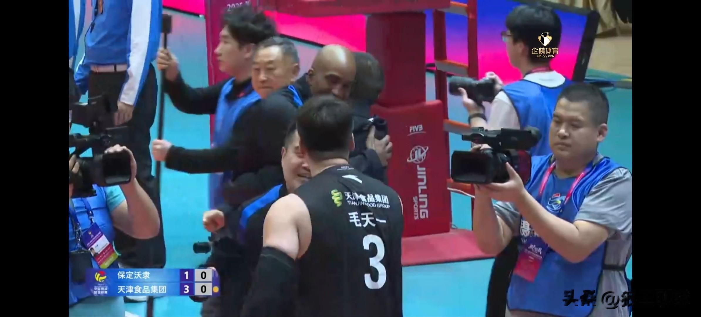 2025-2026中国男排超级联赛A级总决赛冠亚军决赛第三回合,天津食品集团男排客场3-1(16-25 25-22 25-21 25-23)战胜河北保定沃隶男排,天津男排总比分2-1战胜河北男排,天津男排首次加冕全国男排联赛冠军!祝贺天津男排。河北男排遗憾收获亚军,继去年联赛后再次收获总决赛亚军。