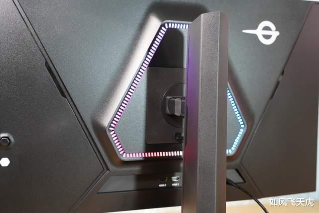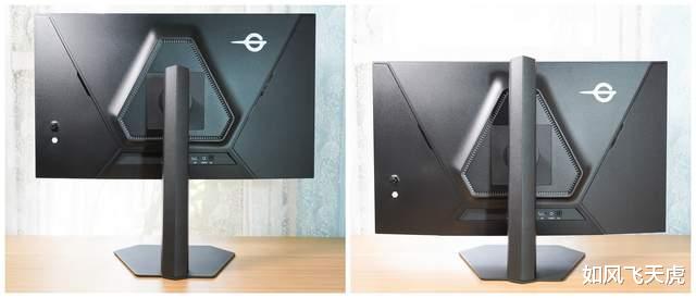 通常来说,一个品牌的系列显示器的外观,通常会有一致的风格。不过这款泰坦军团276MV显示器,却的确同我之前使用和评测过的有些不同。我们从显示器的背面看,它的风格在兼具电竞特色的同时又格外简洁,具有棱角的线条分割各个区域。同时它在背部有个具有特色的六边形区域。