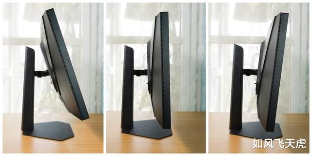 这款显示器的底座支持升降,上下的调整距离达120±5mm,可以更加自己的习惯和实际情况方便地选择,调节滑动非常容易。