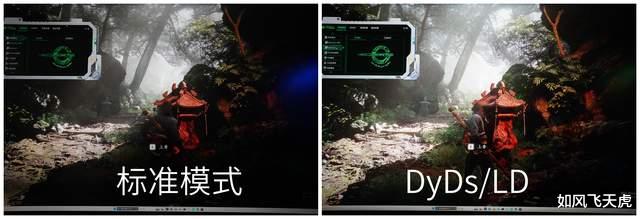 另外一种模式则是DyDs/LD模式,为MOBA/3A玩家主板的,可以在提升动态画面清晰度的前提下,通过开启Local Dimming分区控光,可以提供更加精细化的局部亮度,解决暗部发灰问题,增强对比度、增强画面光影层次,让画面更加生动和震撼。