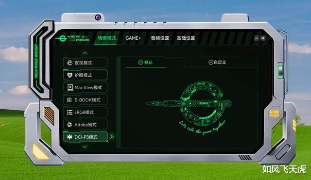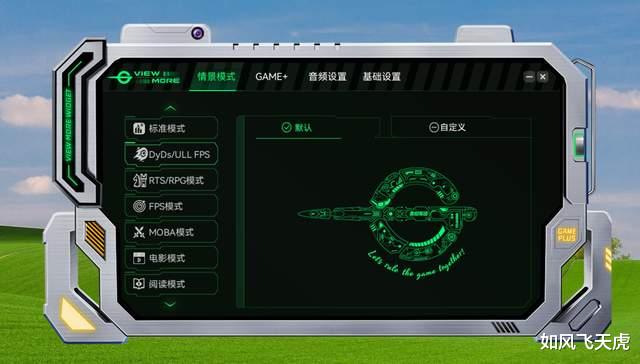 这款软件集成了按钮端的几乎所有控制功能,默认上面有情景模式、GAME+、音频设置、基础设置四个页面。在第一个情景模式里,可以选择15种不同的模式,涵盖了游戏和日常办公的各种应用,除了标准模式外、还有游戏方面的DyDs、RTS/RPG、FPS、MOBA模式,日常使用的电影、阅读、护眼、夜视、Mac View、E-BOOK模式,生产力方面的sRGB、Adobe RGB、DCI-P3模式。并且每种模式,都可以自定义修改各种设置,非常方便。