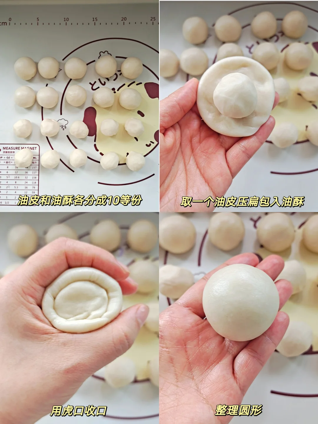 [四R]松弛好的水油皮面团和油酥平均分10份。