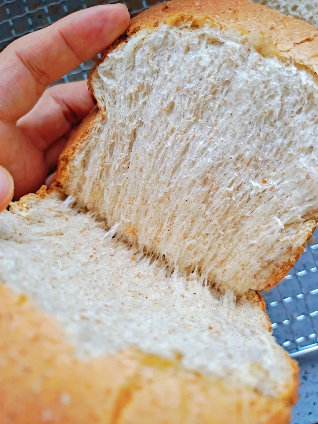 [彩虹R]高筋粉150克,全麦面包粉150克,鸡蛋1个,冰牛奶165克,鲜酵母9克,盐3克,糖25克,黄油20克
