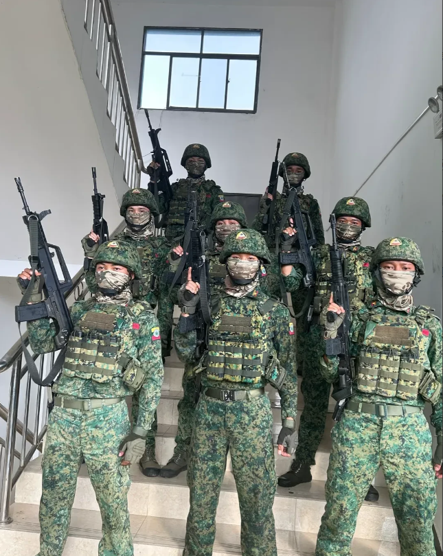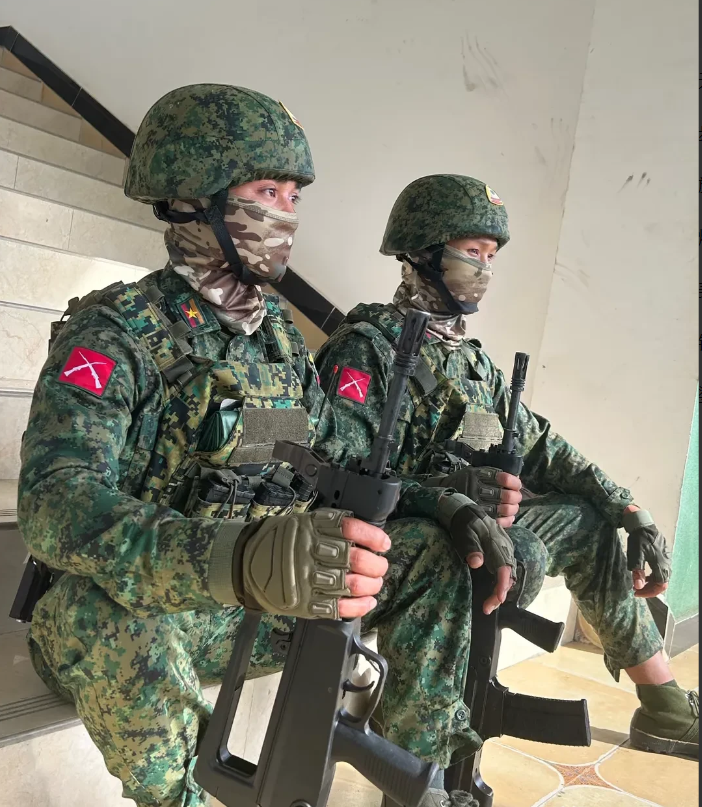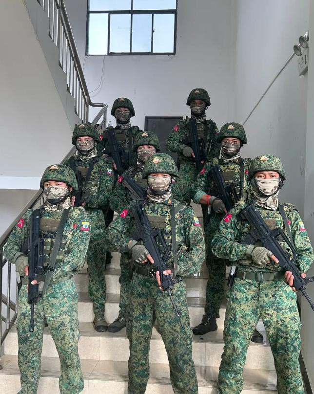 缅北彭家声女婿的武装,实力和佤邦有一比。手里的仿97式步枪应该是自产的