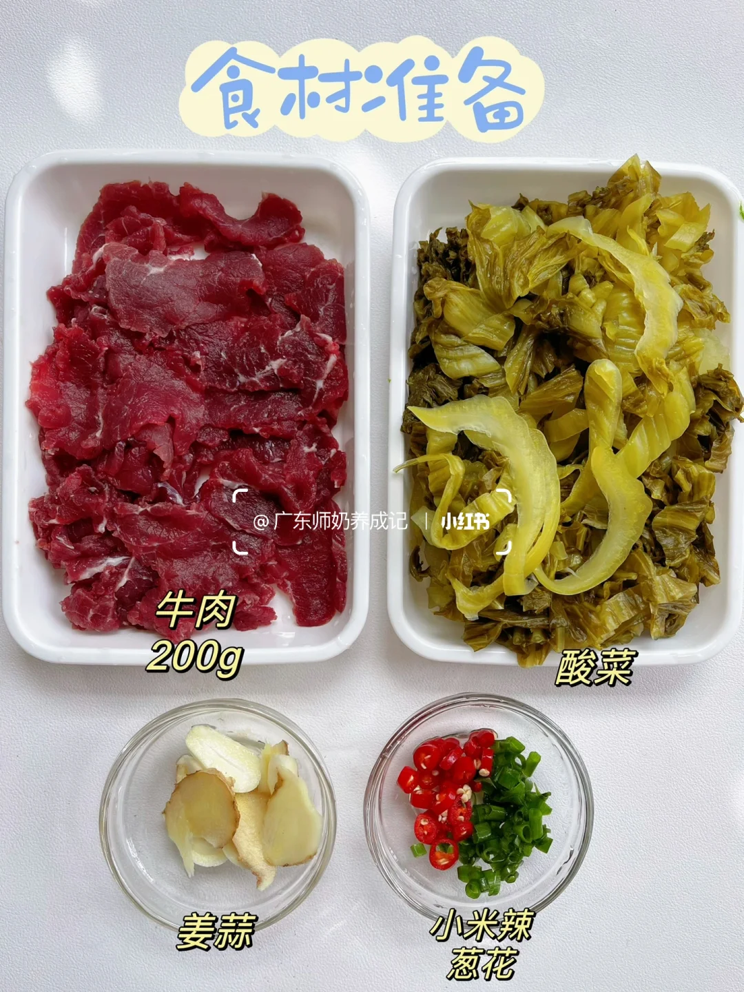 📝【食材】:牛肉,酸菜、姜葱蒜,小米辣