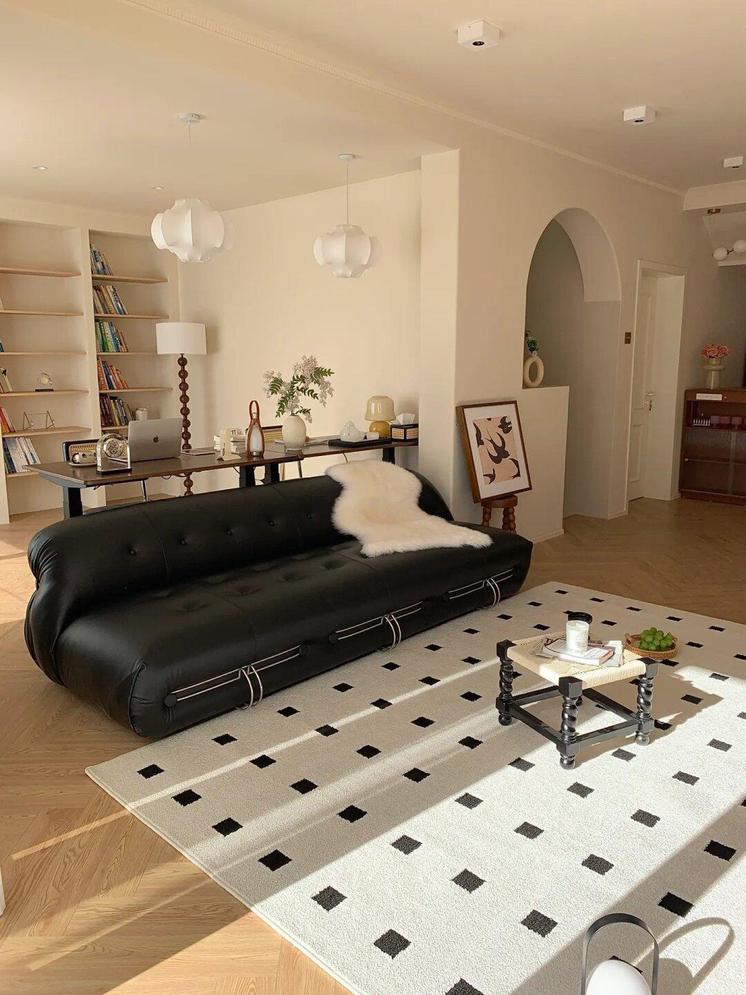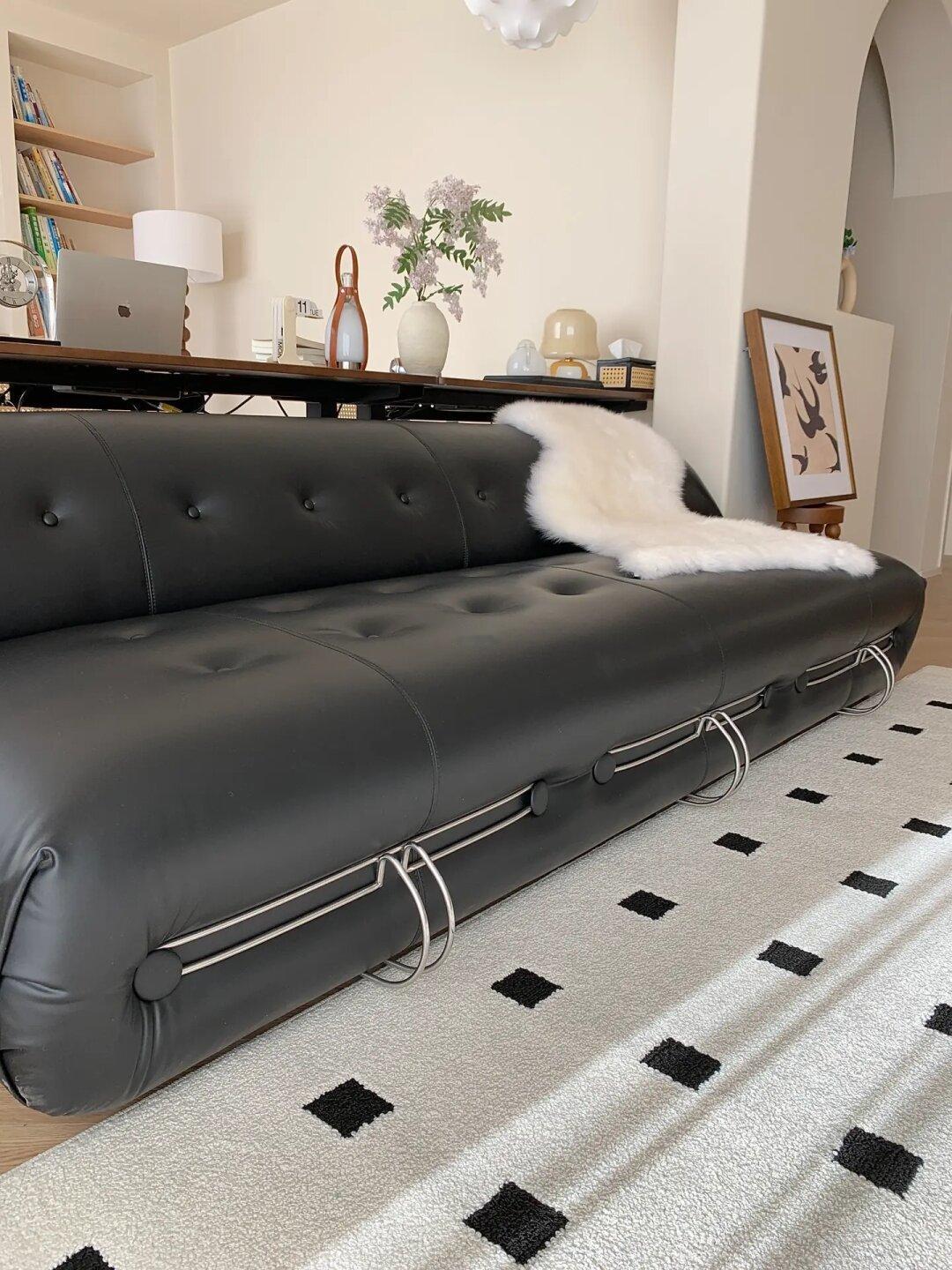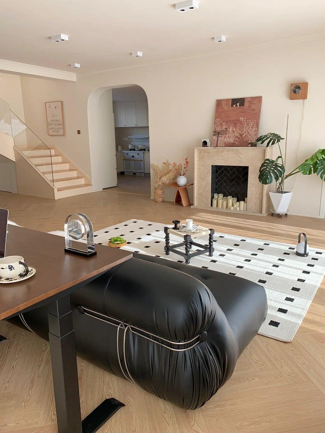 北京入冬啦~我的小家在寒风凛冽时终于大功告成 新家由奶油色+胡桃木色+黑色构成⚫️⚪️🟤 在温馨的同时又不失复古高级感~ . 🤎沙发是软装中很重要的存在 做了很久功课终于搬回这款黑色钢牙沙发 带点中古和包豪斯的味道,设计感满满 磨砂黑的颜色沉稳大气又不失质感 亲肤的硅胶面料搭配高弹海绵坐感柔软又有支撑力 而且面料防水防污很好打理 62cm的坐深也足够日常瘫在沙发上啦 布置好沙发,离理想中的中古风客厅又完整了一些! . 🤎太喜欢窝在沙发上度过慵懒的周末时光啦~