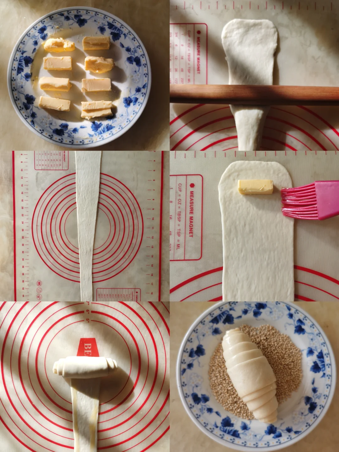 10. 黄油包裹住,从上至下卷起,确保两边褶皱对称。