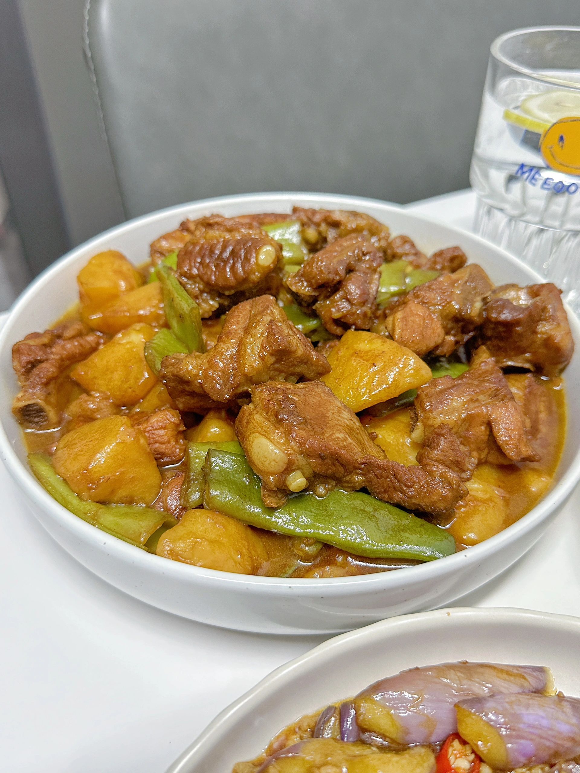 排骨土豆炖豆角 肉末茄子 青蒜豆干🌈