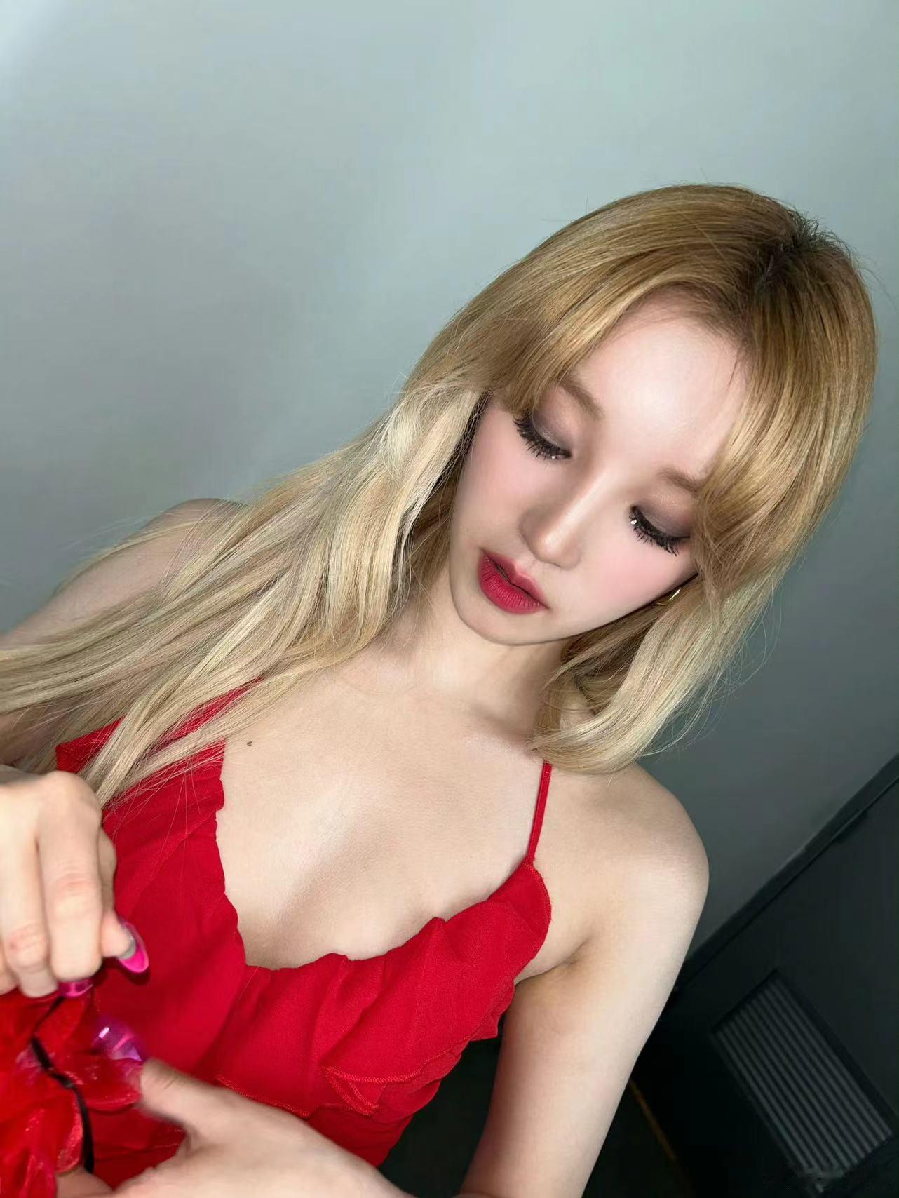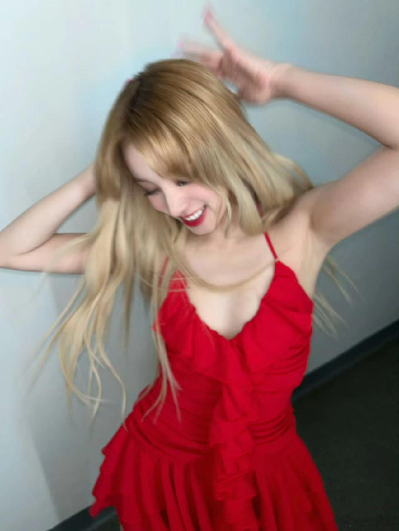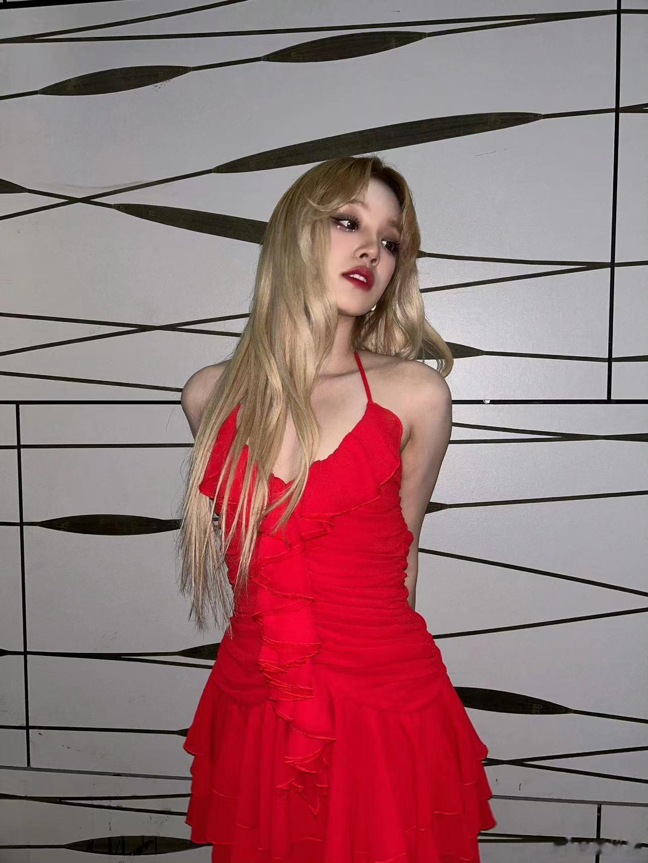 #宋雨琦红玫瑰妆##宋雨琦红色挂脖裙#