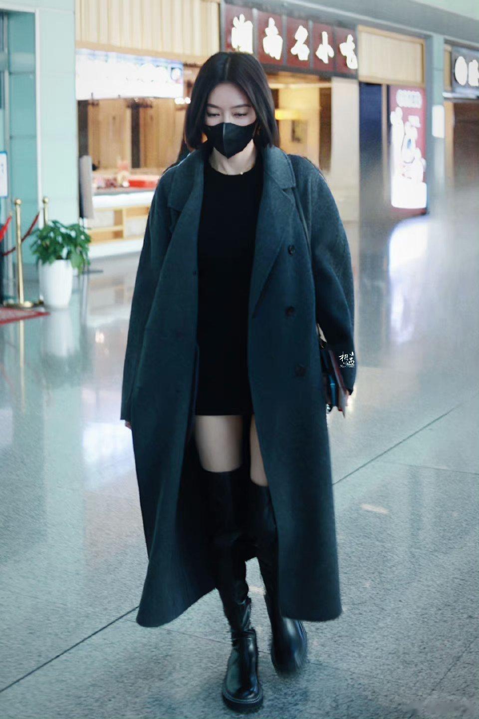 #秦岚姐感穿搭# 真的会被秦岚的穿搭美到[哇]灰色大衣➕黑色长筒靴,简约大气又时
