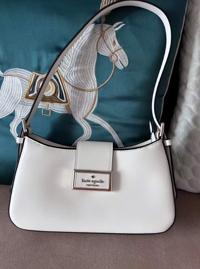 还有Kate spade这只腋下包,虽然同样是百元包,但比之以往买的一些百元小牌包,做工明显感觉不一样。面料采用的牛皮革,品质很高,摸上去触感温润细腻,天然的毛孔和细纹也很独特。