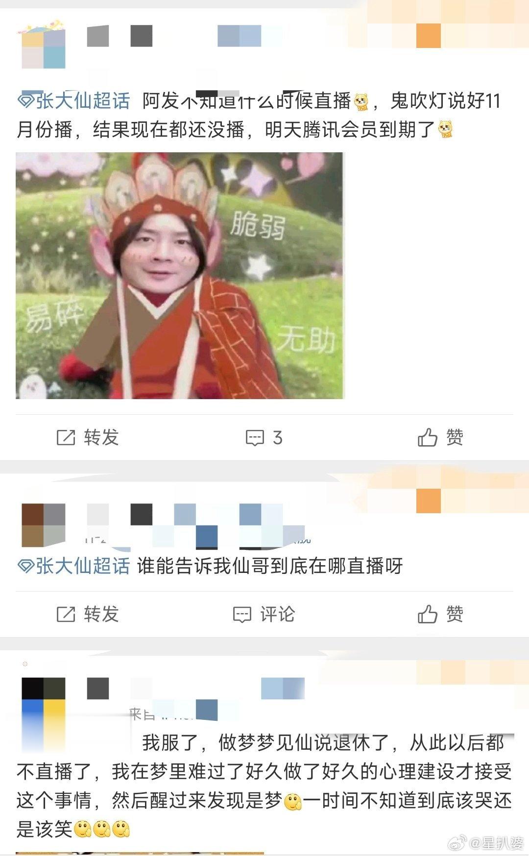 此前张大仙已经停播了三个月,粉丝朋友们对张大仙此次的抖音直播都充满了期待,很多喜欢张大仙直播的粉丝都是因为他独特的人格魅力,相信即将开始新篇章的他一定会越来越好,期待开播[打call][打call][打call]