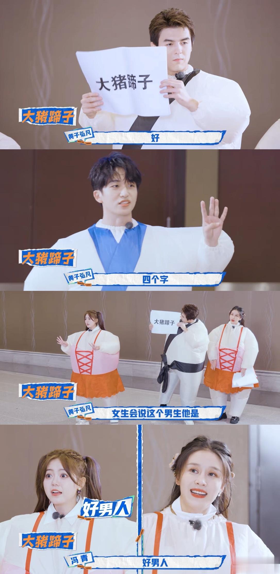 #黄子弘凡被大猪蹄子难住# 黄子弘凡可能万万没想到自己居然被大猪蹄子这个词难住了吧[笑cry]跟队友比划半天把彼此都整绝望了,还得冯青出马演绎才成功猜出[允悲]#冯青帮黄子弘凡演大猪蹄子#