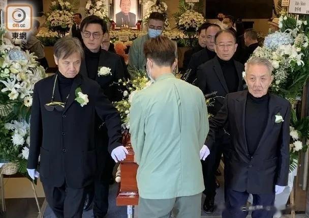 10月29日,香港沙田宝福纪念馆,已故香港资深武打演员孟海出殡,师兄弟和生前好友为其扶灵 右边前起:钱月笙(演员、导演,孟海的大师兄,他们都是京剧刀马旦粉菊花的门下弟子)、李仁港(导演、美术指导)、程东(演员、动作指导)、钱嘉乐(演员、动作指导,香港动作特技演员公会会长,前洪家班成员) 左边前起:董玮(演员、动作指导、导演,孟海的师弟)、杨明(演员)、?、卢惠光(演员,前成家班成员) #香港电影# #龙虎武师# #武打演员孟海去世#