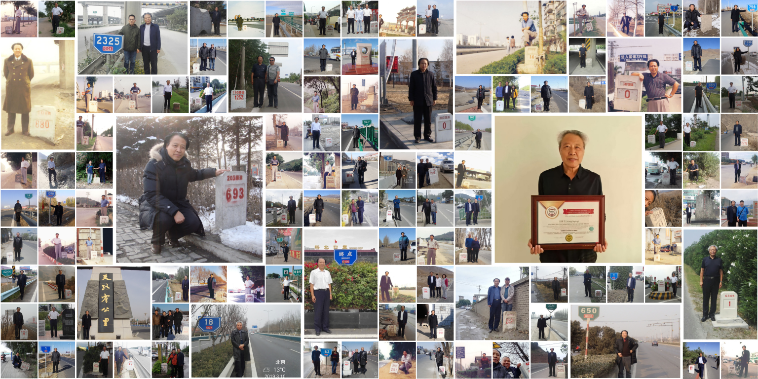 来自中国沈阳的王家平,自1996年至2019年,历时二十余年,先后与全国117处国家级道路起点和终点里程碑合影留念。其中包括59处国道起点里程碑、58处国道终点里程碑,覆盖62条普通国道和7条国家高速公路。经英国福布斯世界纪录认证机构(FWRC)审核确认,他成功创造了“与国道起讫点里程碑合影次数最多”的世界纪录。