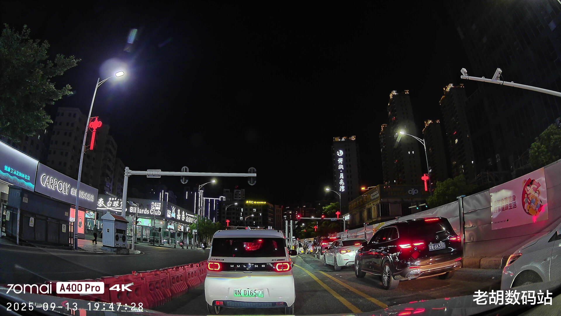 白天表现不俗,夜晚同样出众。实测夜间拍摄效果令人惊喜,70迈自研的“星光夜枭”影像算法,配合F1.55大光圈+2G4P 6层高透镜片,在暗光、逆光等复杂光源环境下依然成像干净、细节清晰。即便处于画面边缘的车牌,放大后依旧可辨,动态抓拍也不拖影、不模糊。夜间拍摄能力可谓相当可靠。