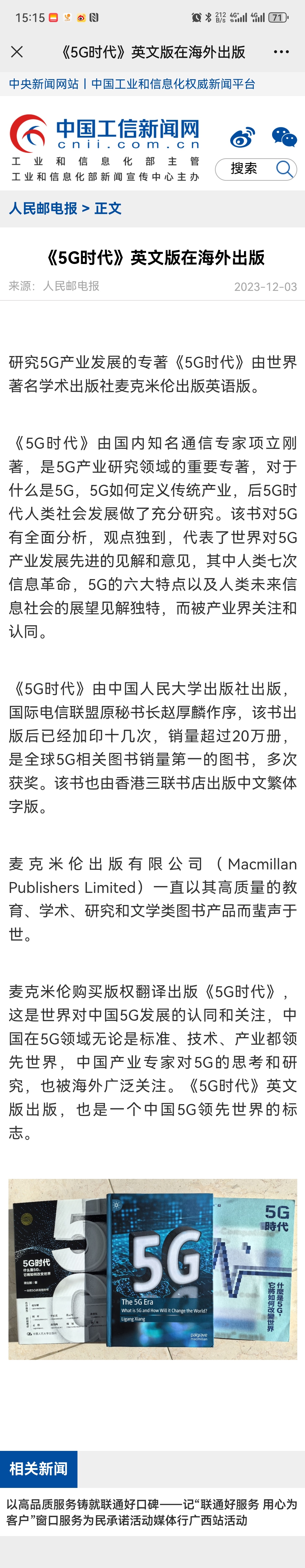 我的《5G时代》出了个英文版,能把书卖了版权,还是令人高兴的,不是更多的传播中华文明对世界的理解。这其中也有点感感叹。
