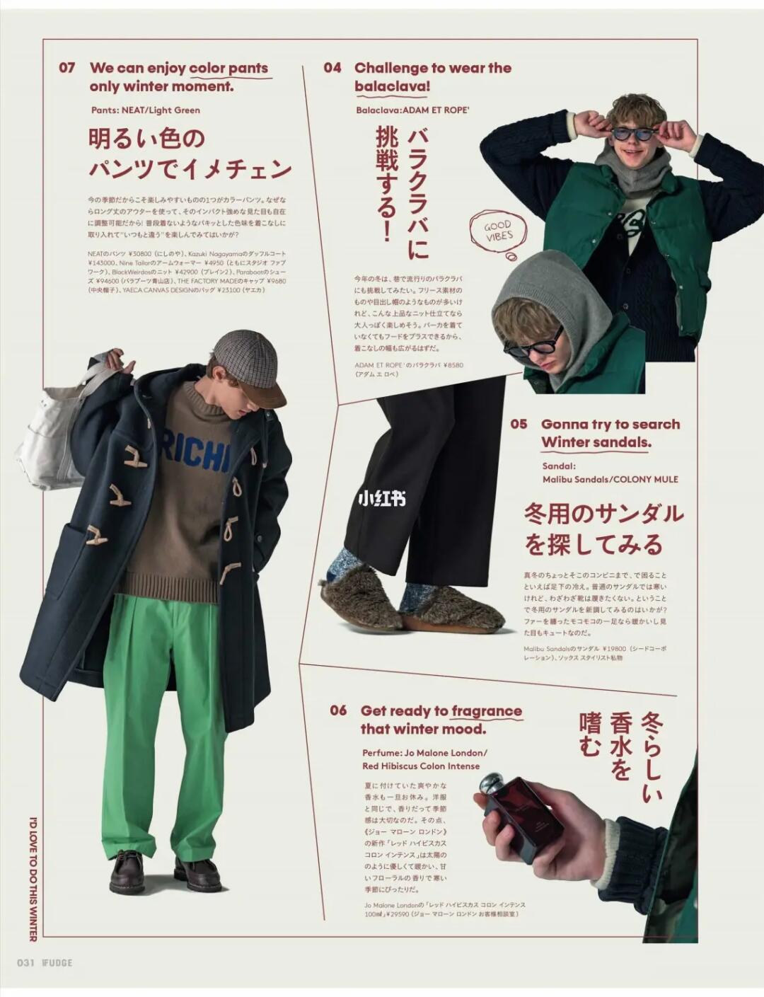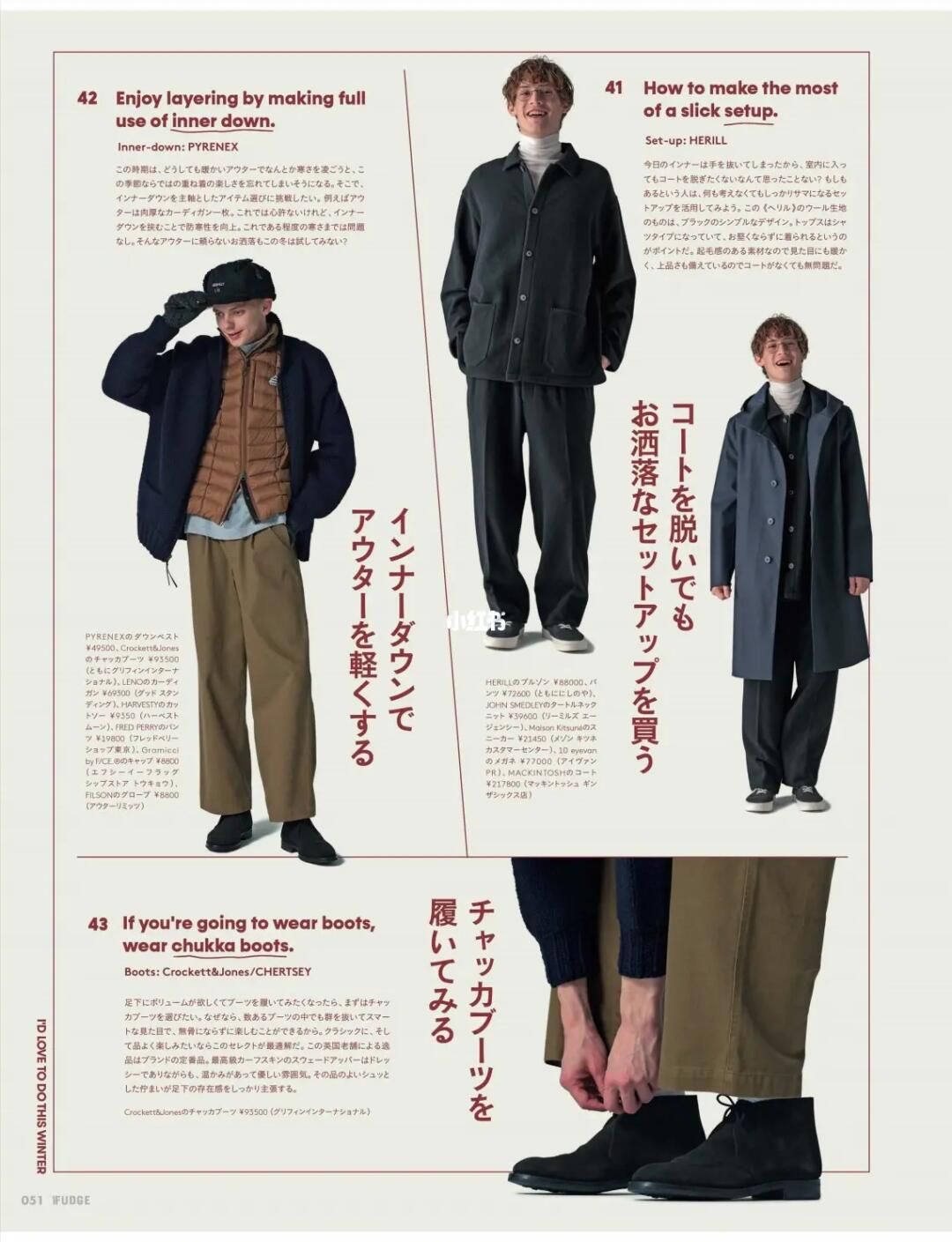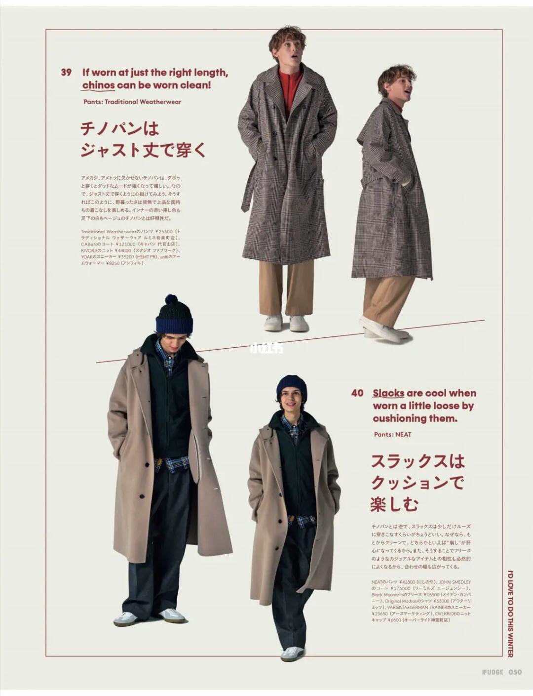 最新一期的 men's FUDGE vol.158 涵盖了冬季基本款外套的色彩搭配,注重色彩的运用,深入探讨了不同外套的穿着风格。