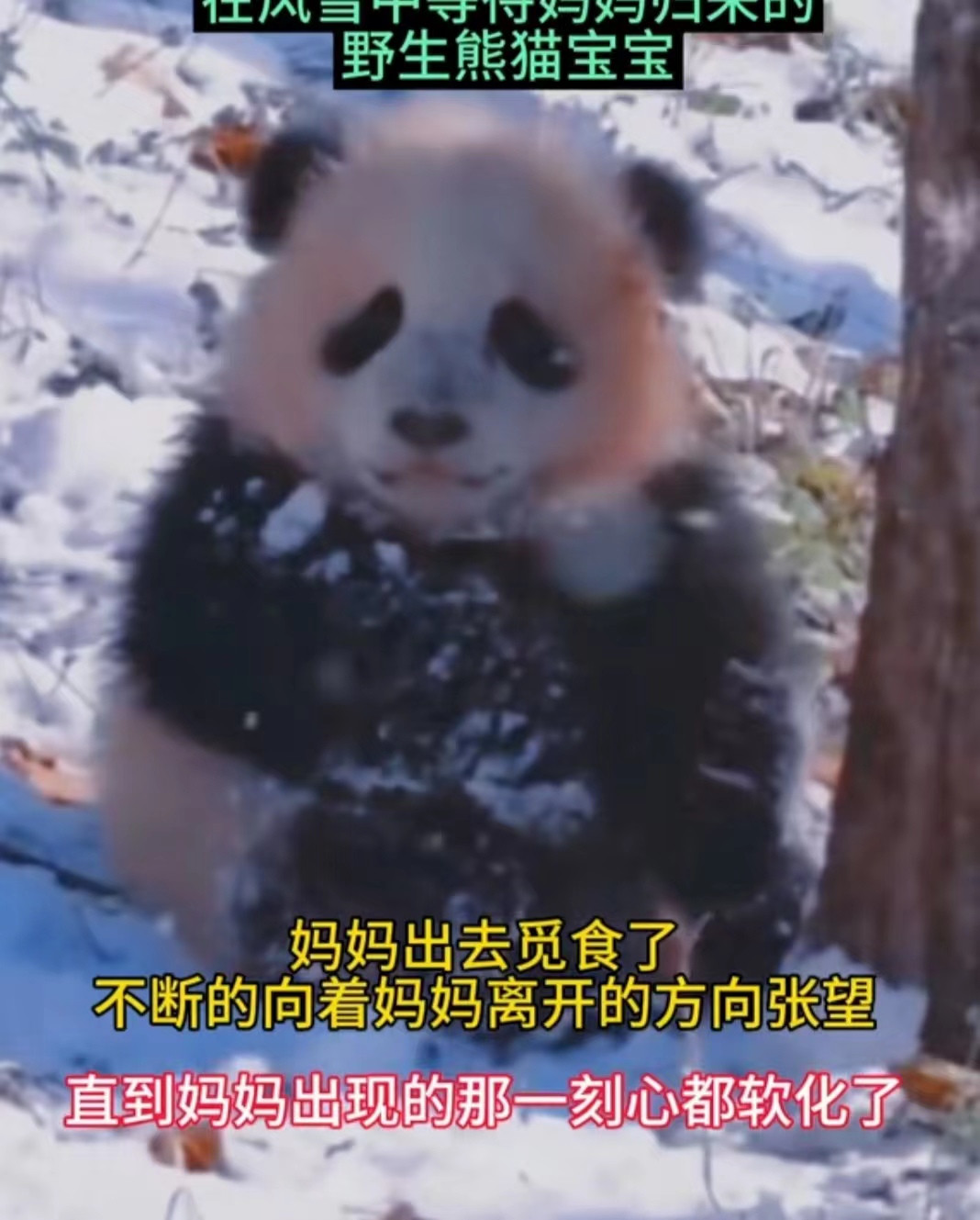 太萌了!一段野生熊猫幼崽在风雪中等待妈妈的视频,让人久久不能忘怀。在白雪皑皑的雪地里,它就像一个小宝宝一样乖乖的坐在地上,眼睛望着妈妈离开的方向。当妈妈回来时,它高兴的跑向妈妈,妈妈将它抱在怀里,又亲又抱,看到这一刻心都软化了,像极了留守儿童。