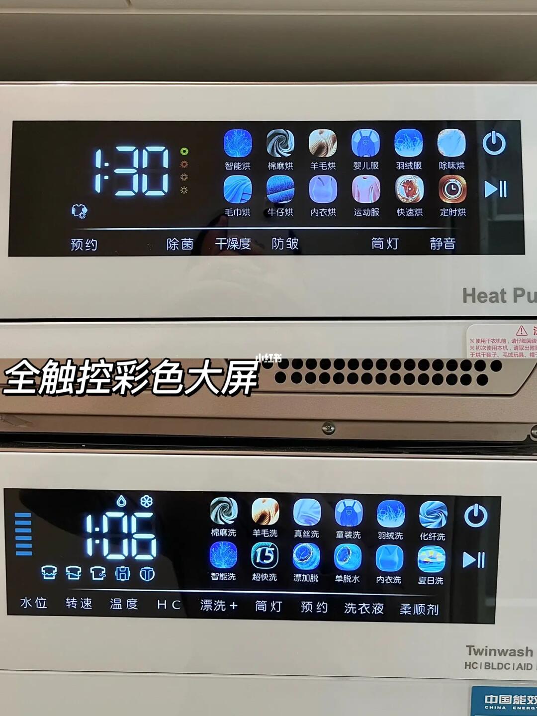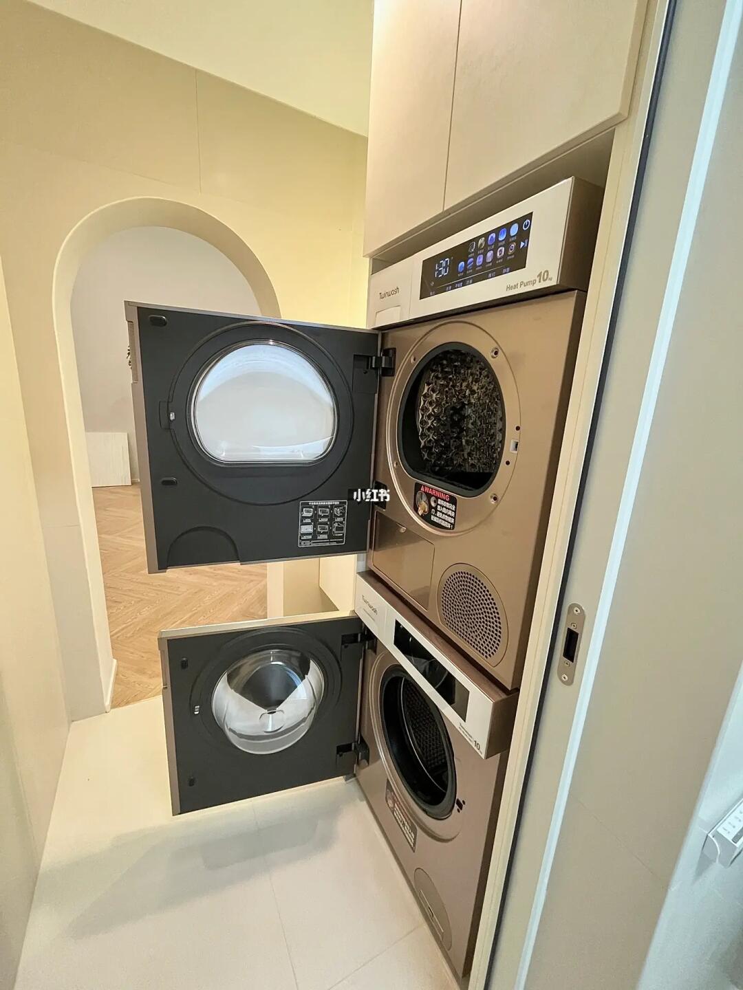 为了搭配奶油风的装修风格,我研究了好久,选了町渥筒真净洗烘套装T6W+D2W,嵌入式安装在柜子里,上烘下洗,没有占用太多空间,美观又实用。终于不用费劲的在阳台晾衣服啦。我选的这两款机器都是全触控大屏幕,科技感满满的,所有功能一目了然操作也很简洁。