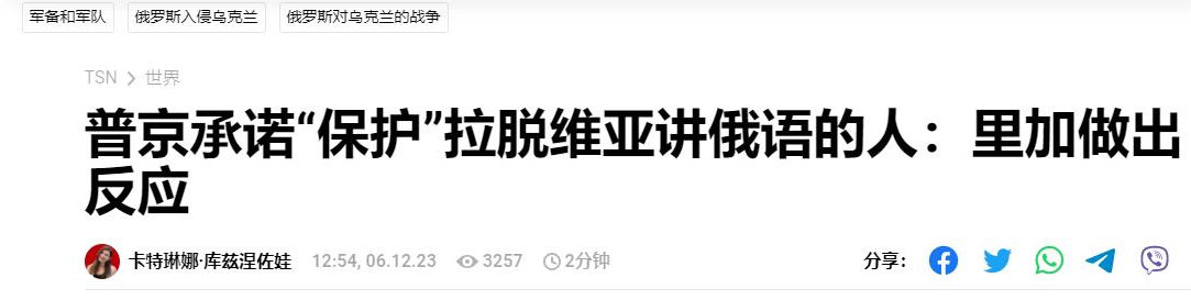 普京警告拉脱维亚不要歧视俄罗斯族人,拉脱维亚总统挺直了腰杆回应称:“普京的此类言论不仅试图分裂我们的社会,而且分裂西方社会,以各种方式减少对乌克兰的支持——无论是实际的政治的还是道义方面。”